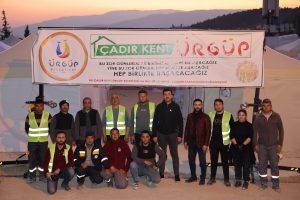 Ürgüp Belediyesi ekipleri Hatay Kırıkhan’daki depremzedeler için çadır kent kurulumunu tamamladı.