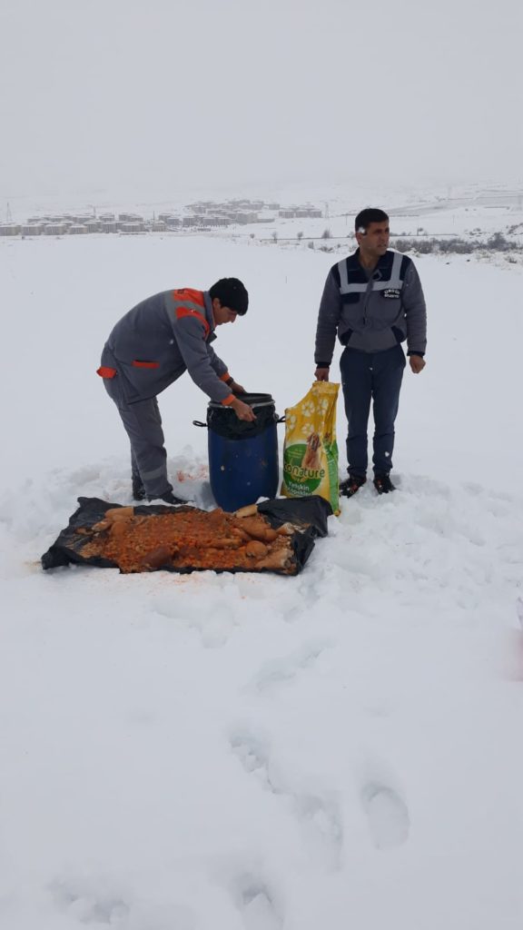 Kar yağışıyla birlikte yem bulmakta zorlanan kuşlar için de belirli noktalara yem bırakıldı.