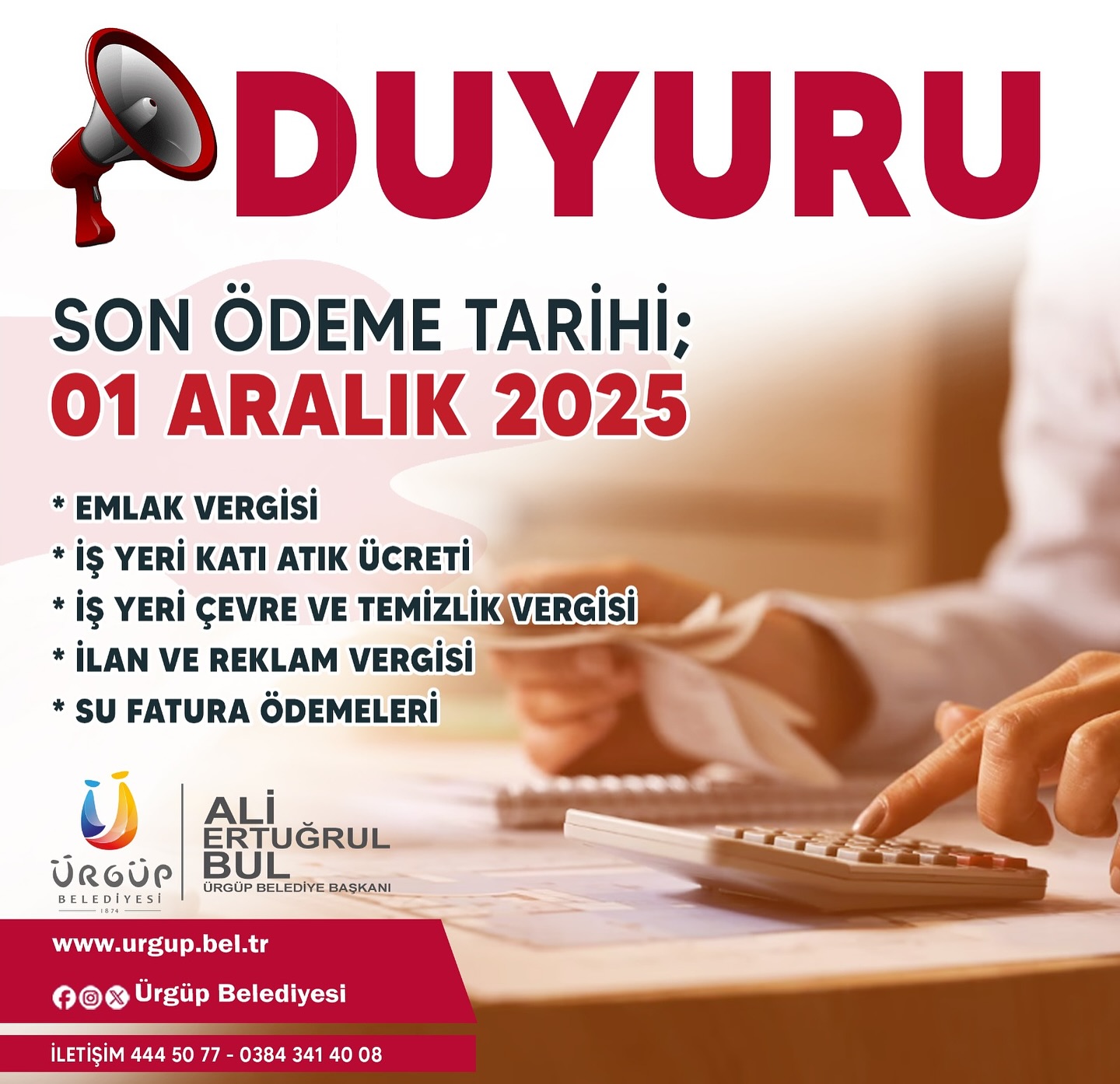 Ürgüp Belediyesi, kamu hizmetlerinin aksamadan sürdürülebilmesi için ödeme tarihlerine dikkat edilmesi gerektiğini hatırlattı.