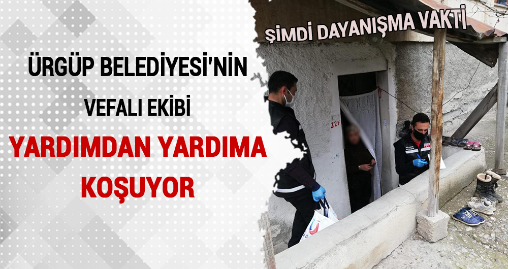 Ürgüp Belediyesi tarafından oluşturulan vefa sosyal destek ekibi kovid-19 tedbirleri kapsamında evinde kalan ihtiyaç sahibi vatandaşların yardımına koşuyor.