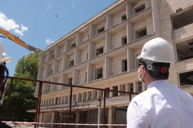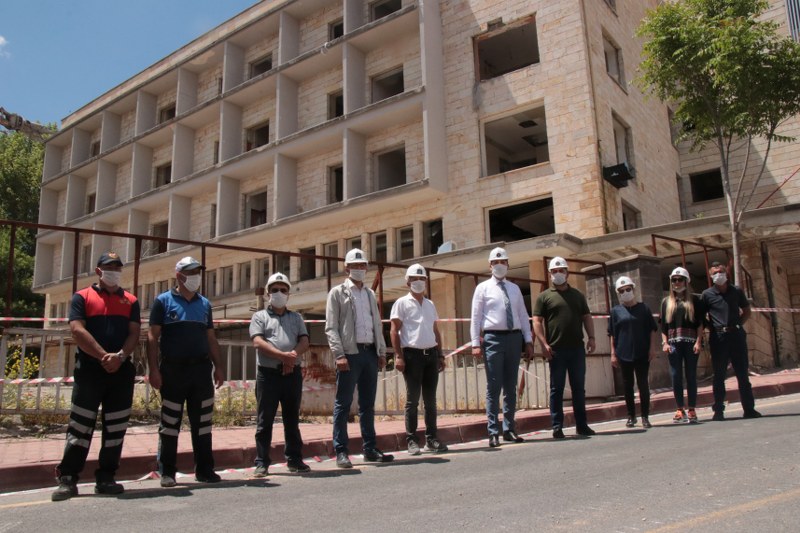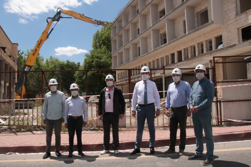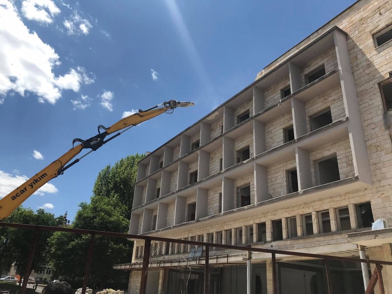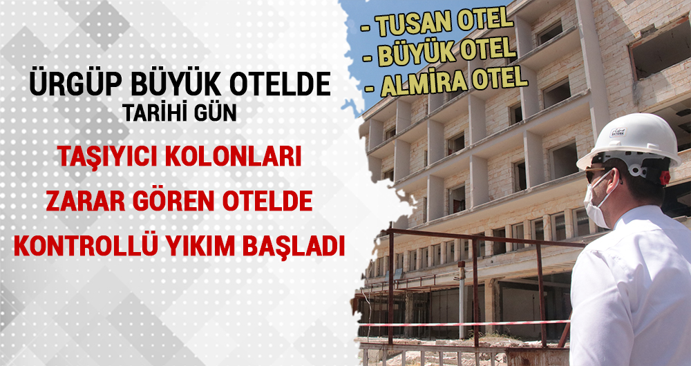 Yıkımımız inşallah hayırlara vesile olur, Ya Allah, Bismillah.” Diyerek Ürgüp’ün geleceği için büyük önem taşıyan otel binasındaki yıkımı başlattı.