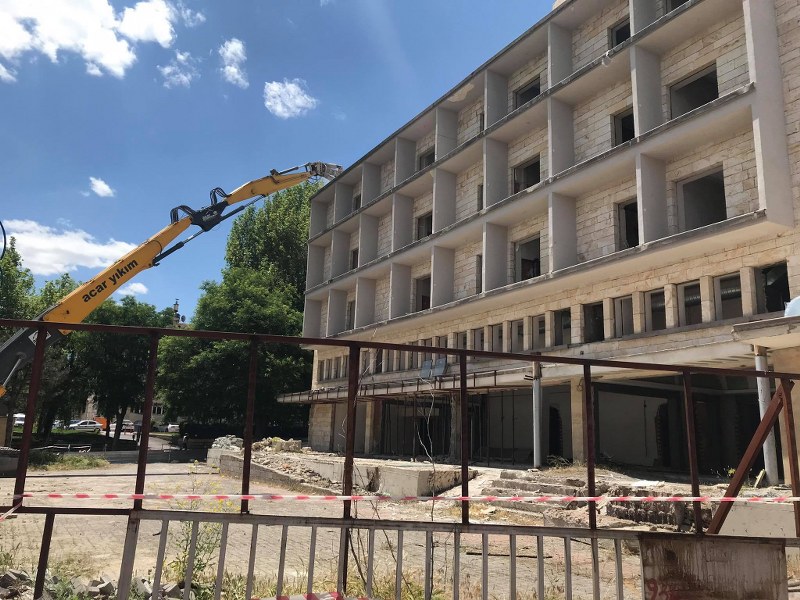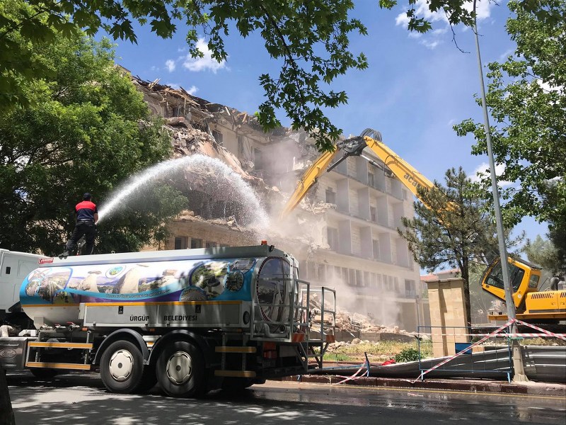 Ürgüp Belediyesi’nin mülkiyeti olan ve Ürgüp turizmi ve ekonomisi için büyük önem taşıyan Ürgüp’ün merkezindeki 110 odalı otel binasında yıkım ve hafriyat çalışmaları başladı.