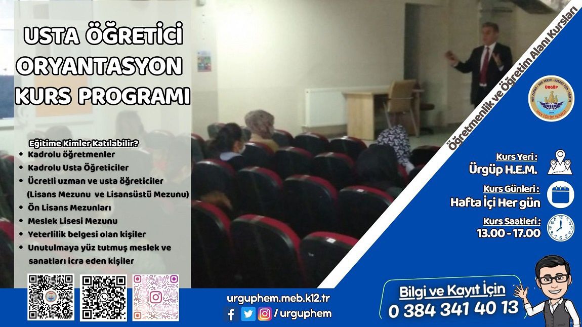 Ürgüp Halk Eğitim merkezinde usta öğreticilere yönelik oryantasyon kursu açılacak.