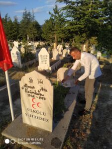 Ürgüp Ülkü Ocakları Başkanı Celal Uraz Kılıç ve beraberinde ki heyet Nevşehirli Ülkücü Şehit Ahmet Ata Üzümkuşu’nu kabri başında ziyaret etti.
