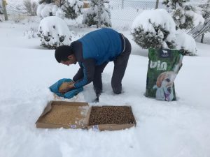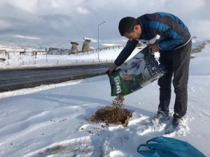 Ürgüp Ziraat Odası dondurucu karlı hava da sokak ve yaban hayvanları için doğaya mama ve kuş yemi bıraktı.