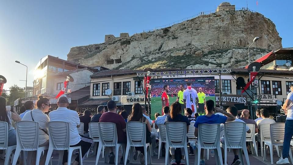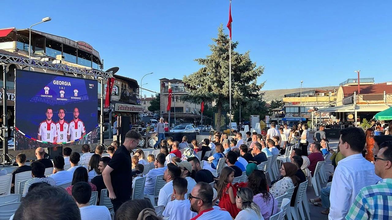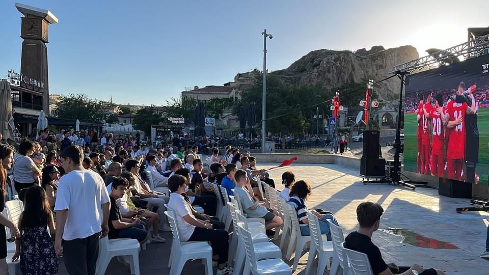Ürgüp Belediyesi tarafından Türkiye – Gürcistan karşılaşması için kurulan dev ekranda Avrupa Şampiyonası (EURO 2024) büyük bir coşkuyla izlendi. Dortmund Stadı’nda Türkiye – Gürcistan arasında oynanan müsabaka Ürgüp Belediyesi tarafından Cumhuriyet Meydanı’na kurulan dev LED ekran izlendi.