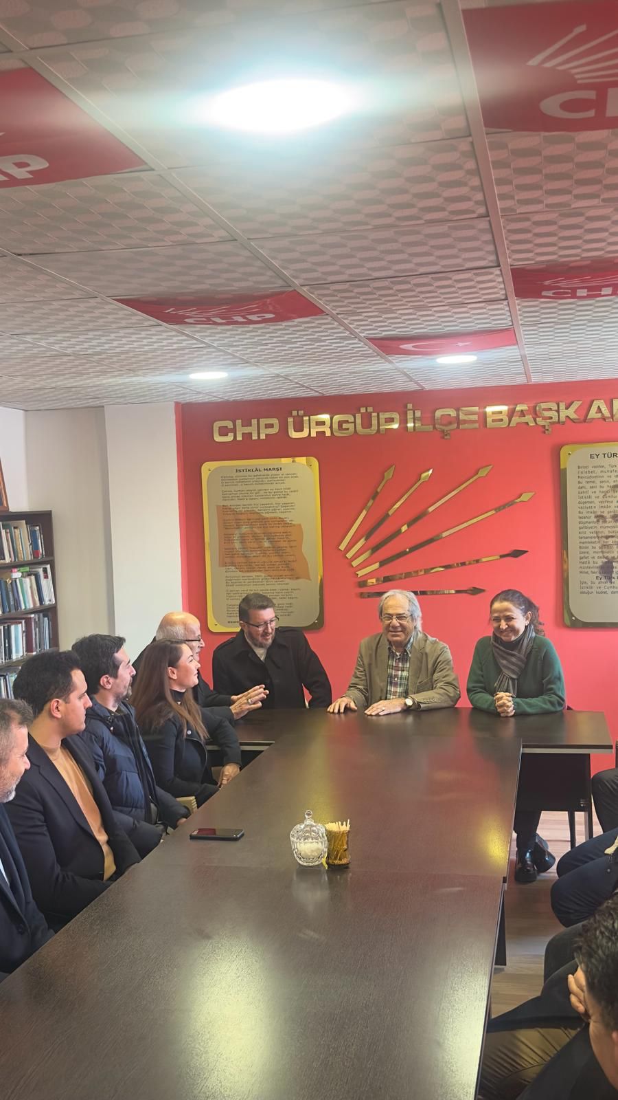 AK Parti’nin adayı CHP’nin seçim ofisini ziyaret etti. AK Parti Ürgüp Belediye Başkan Adayı Fahri Yıldız, 31 Mart Mahalli İdareler Seçimi için çalışmalarını hız kesmeden sürdürüyor. Gerçekleştirdiği ziyaretlerinde Ürgüp Belediyesi’ni ortak akıl ve istişare işe yöneteceğini belirten Başkan Adayı Fahri Yıldız,Suat Hayri Ürgüp’lü caddesinde gerçekleştirdiği seçim çalışmaları sırasında CHP İlçe Binasını ziyaret etti. Ziyaretlerinde CHP İlçe Başkanı Koray Aranat Nezdinde CHP Adayı Ali Ertuğrul Bul’a Ürgüp’e hizmet yolunda çıkmış olduğu seçim çalışmalarında başarılar diledi. AK Parti heyetinin ziyaretlerinden memnuniyet duyduğunu belirten CHP Ürgüp İlçe Başkanı Koray Aranat nazik ziyaretleri için Başkan Adayı Fahri Yıldız ve heyetine teşekkür etti. Ziyaretler esnasında AK Parti Ürgüp İlçe Başkanı Doğan Derin ve Belediye Meclis Üyesi adaylarıda hazır bulundular.