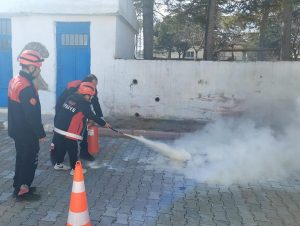 İtfaiye Müdürlüğü ekiplerince verilen eğitimlerde, olası yangın durumlarında alınması gereken önlemler anlatılırken, uygulamalı tatbikatla öğrencilerin ve personelin bilinçli ve güvenli hareket etmesinin önemi vurgulandı.