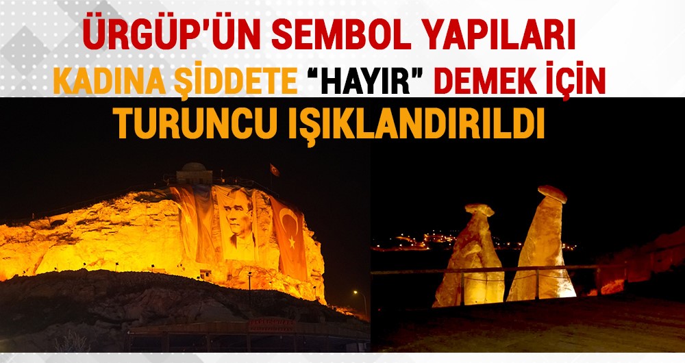 Ürgüp’ün sembol yapıları kadına şiddete ‘Hayır’ demek için turuncu ışıklandırıldı
