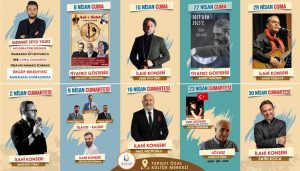 Cuma ve Cumartesi günleri teravih namazının ardından Ezgileriyle gönüllerde taht kuran sanatçılar Mustafa Cihat, Seyfullah Çakmak, Eşref Ziya Terzi, Halil Necipoğlu, Aykut Kuşkaya, Fatih Koca Ürgüp Belediyesi Turgut Özal Kültür Merkezindeki ramazan sahnesinde izleyiciyle buluşacak.