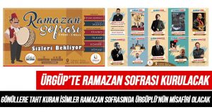 Ürgüp Belediyesi tarafından bu yılda ramazan ayı süresince iftarda “Ramazan Sofrası” kurulacak. Ramazan süresince Cuma ve Cumartesi günleri teravih namazından sonra düzenlenecek programlar gönüllerde iz bırakacak.