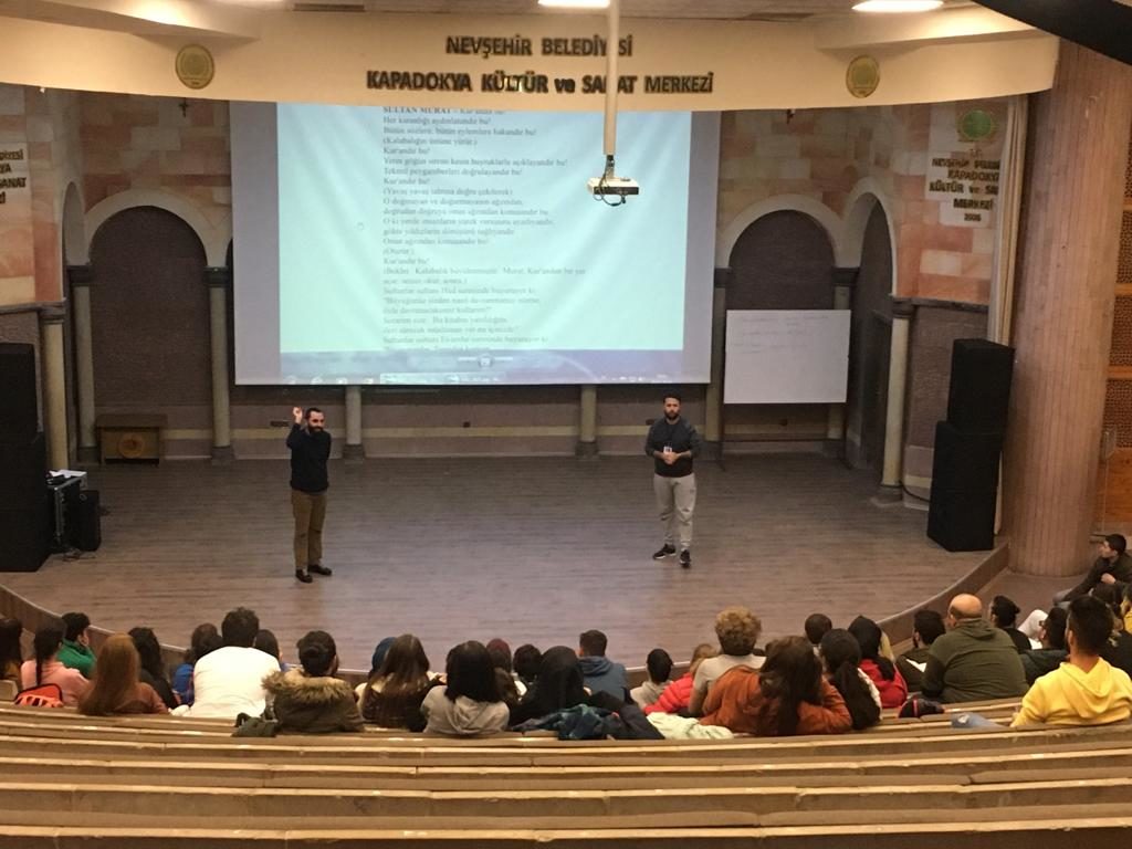Nevşehir’de ilk kez gerçekleştirilen ustalarla oyunculuk eğitimlerinde kursiyerlere hem teorik hem de pratik olarak verilen eğitimler Kapadokya Kültür ve Sanat Merkezi’nde gerçekleştirildi.