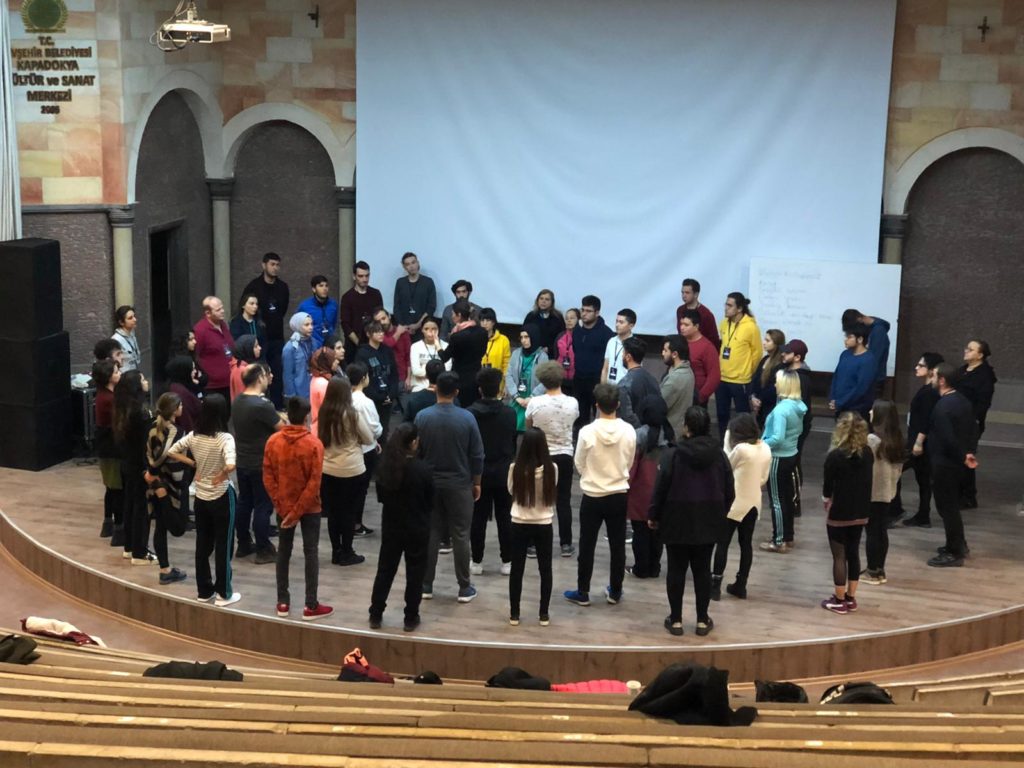 Nevşehir’in yanı sıra Türkiye’nin farklı illerinden 65 oyuncu adayının katıldığı oyunculuk atölyesinde katılımcılar Türk Tiyatrosunun usta isimleri tarafından;