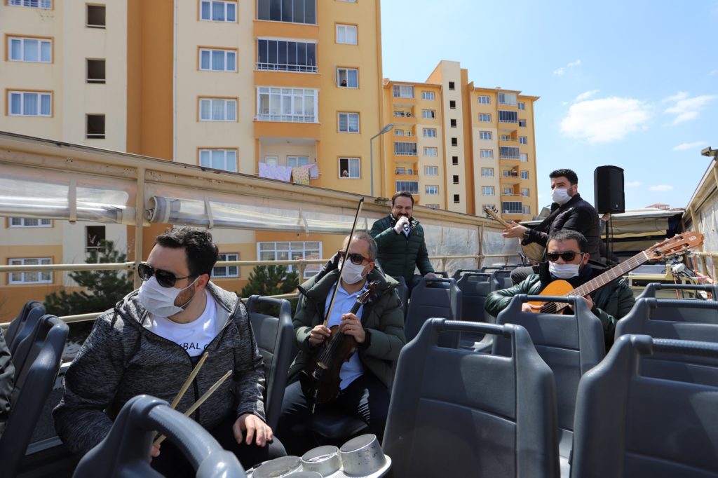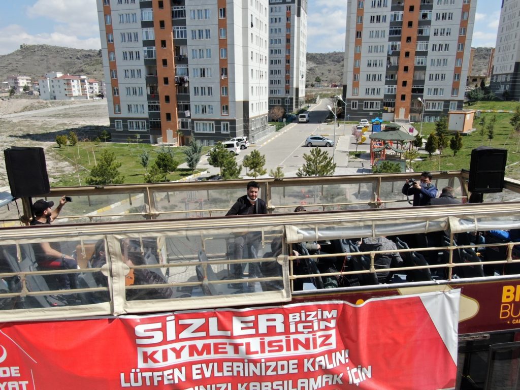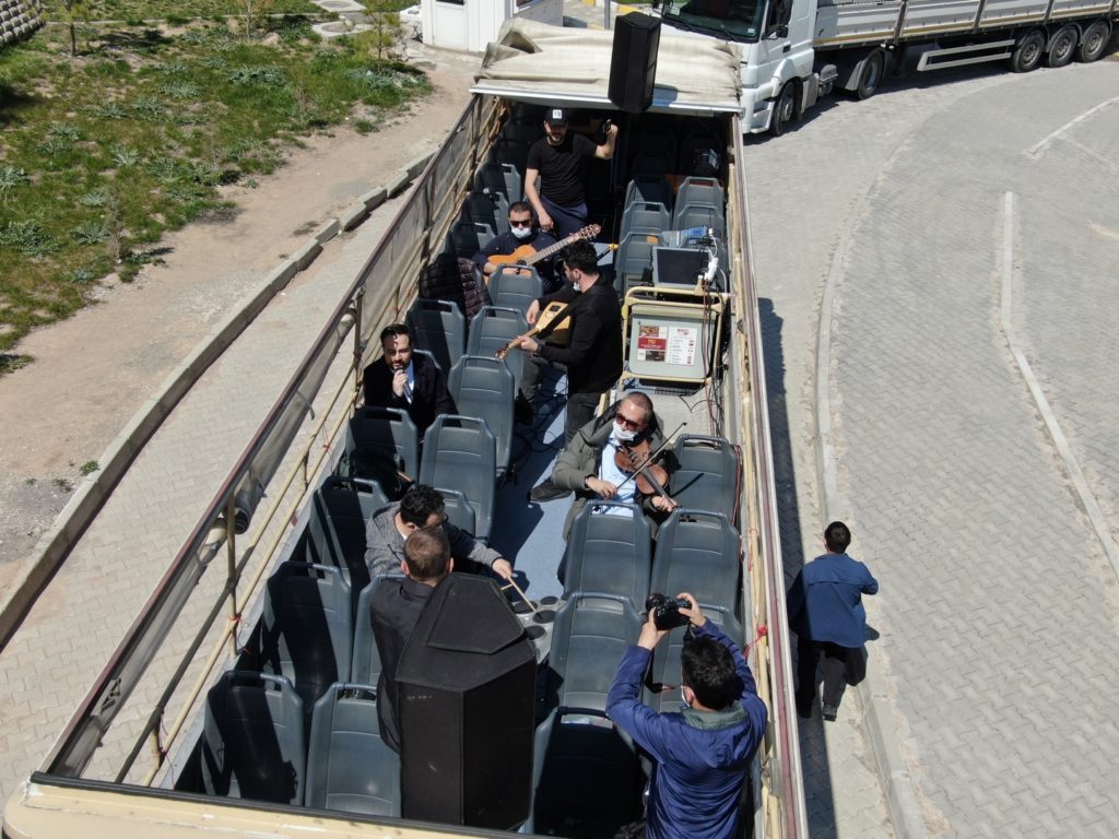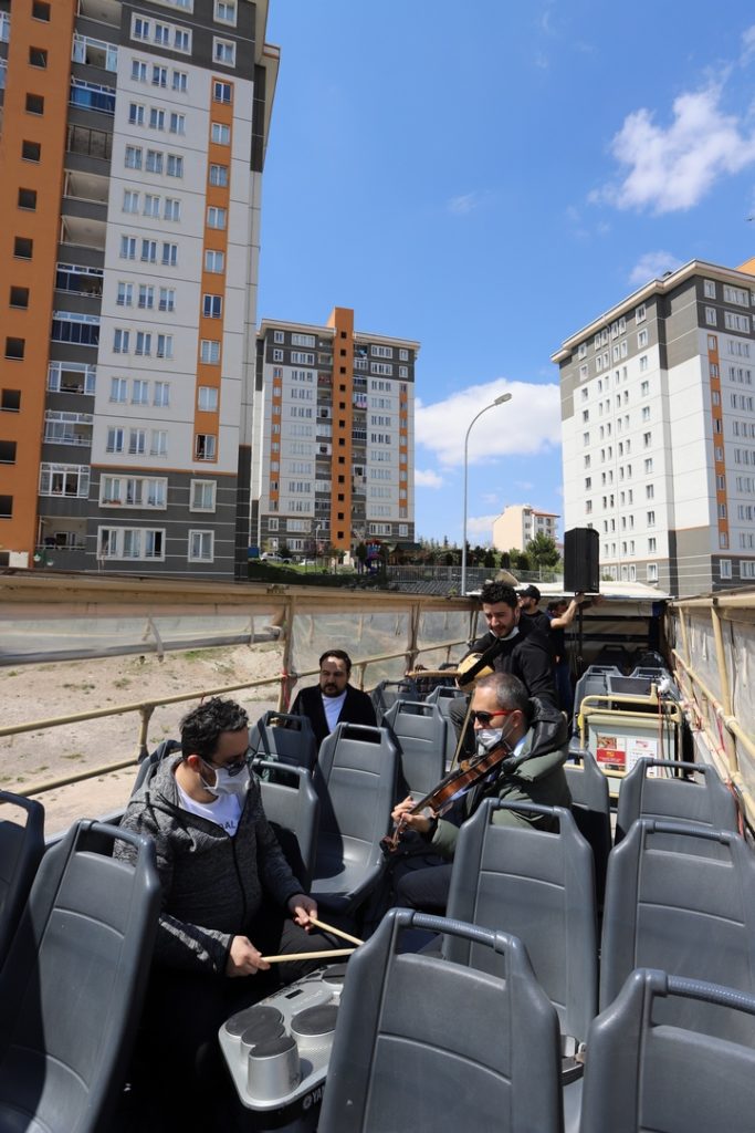 Bu kapsamda Nevşehir Belediyesi Kültür ve Sosyal İşler Müdürlüğü Müzik Topluluğu, Belediye Başkanı Rasim Arı’nın kullandığı ve özel olarak dizayn edilen üstü açık bir otobüsle mahalleleri gezerek konser verdi.