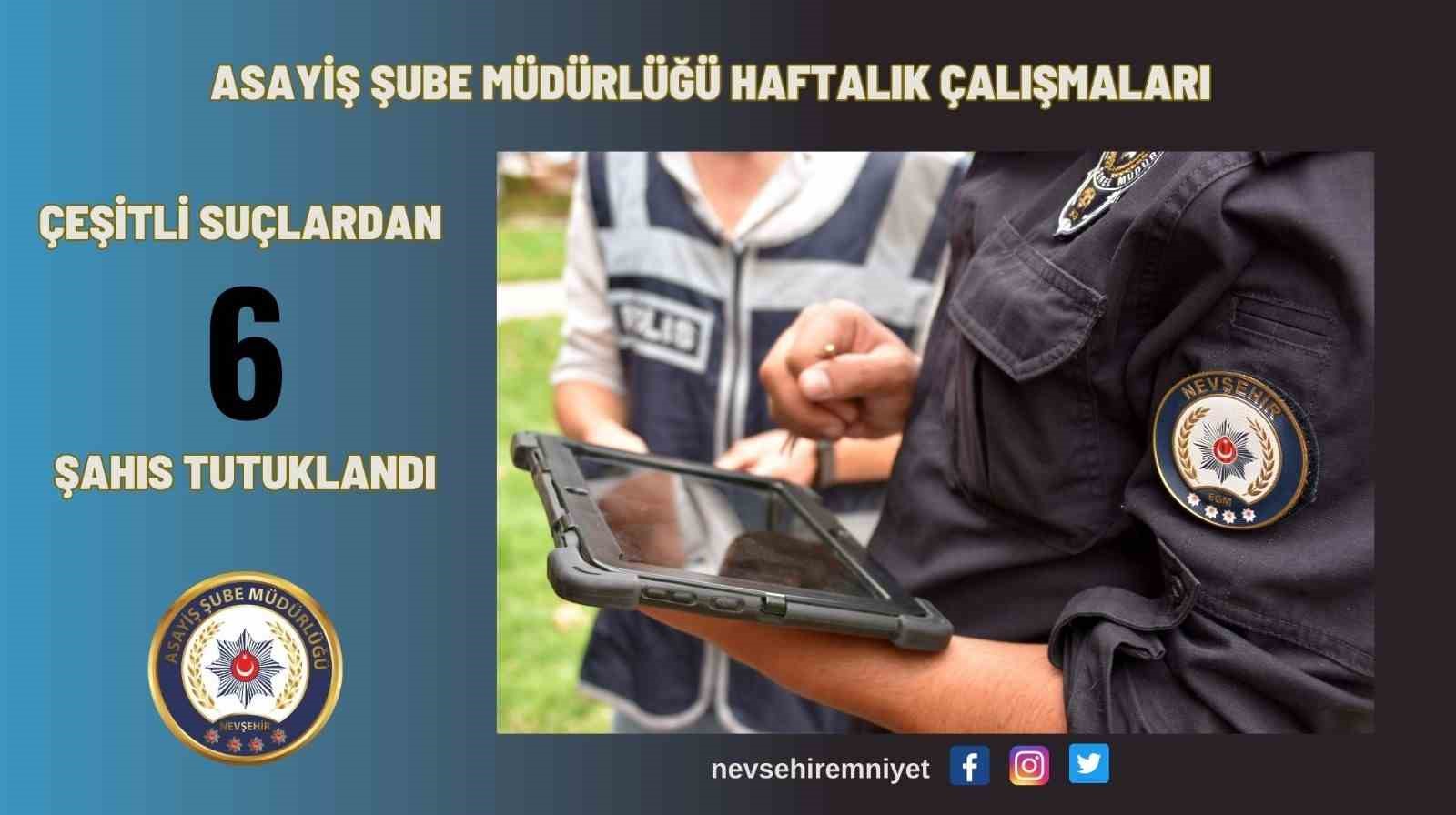 Nevşehir’de hakkında UYAP araması bulunan 6 şahıs tutuklandı.