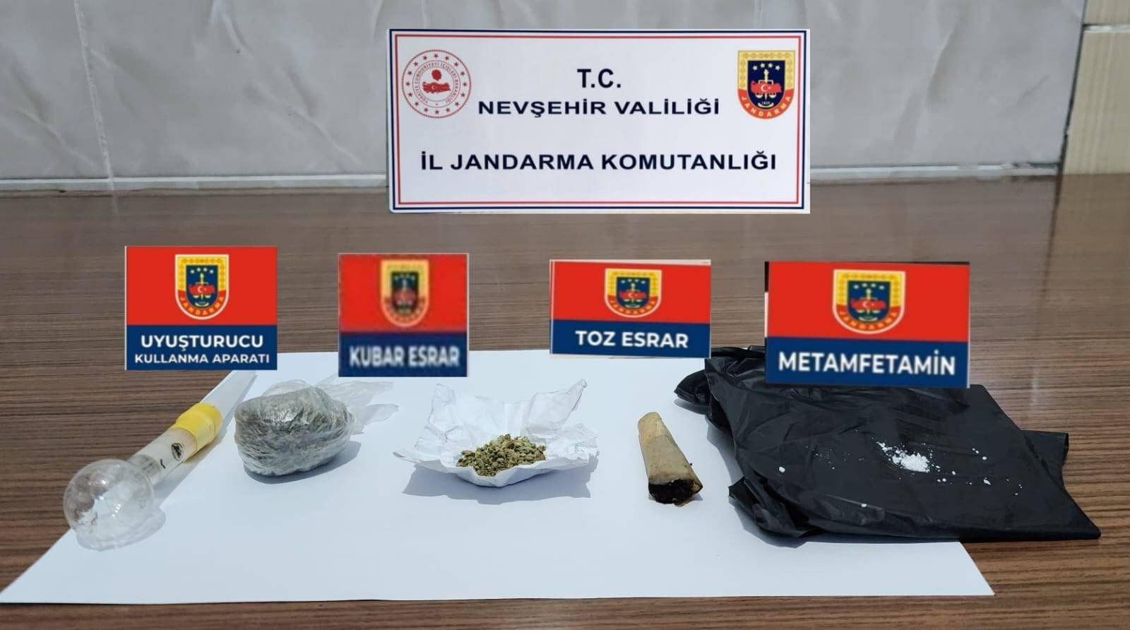 Nevşehir İl Jandarma Komutanlığına bağlı Jandarma Suç Araştırma Dedektifleri (JASAT) uyuşturucuya geçit vermiyor. İstihbarat Şube Müdürlüğü ve Kozaklı İlçe Jandarma Komutanlığı ekipleri ile 27-28 Ocak 2024 tarihleri arasında (3) şahsa yönelik yapılan operasyon sonucunda (15) gr uyuşturucu madde ele geçirilirken şüpheli şahıslar hakkında Nevşehir Cumhuriyet Başsavcılığının talimatı ile adli tahkikat başlatıldı.