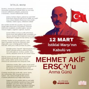 Millî mücadele döneminde yüreği vatan-millet sevgisiyle ve bağımsızlık aşkıyla yanan milletimizin bağımsızlığa olan tutkusunu, milli birlik ve beraberliğimizi en veciz biçimde ortaya koyan Mehmet Akif Ersoy’un kaleme aldığı İstiklal Marşı, milletimizin, vatan ve bayrak sevgisinden, özgür ve bağımsız yaşama tutkusundan ödün vermeden, haksızlıklara karşı dimdik ayakta durarak yeniden varoluşunun, milli birlik ve bütünlüğünün simgesi olarak aziz milletimizin hissiyatına tercüman olmuştur.