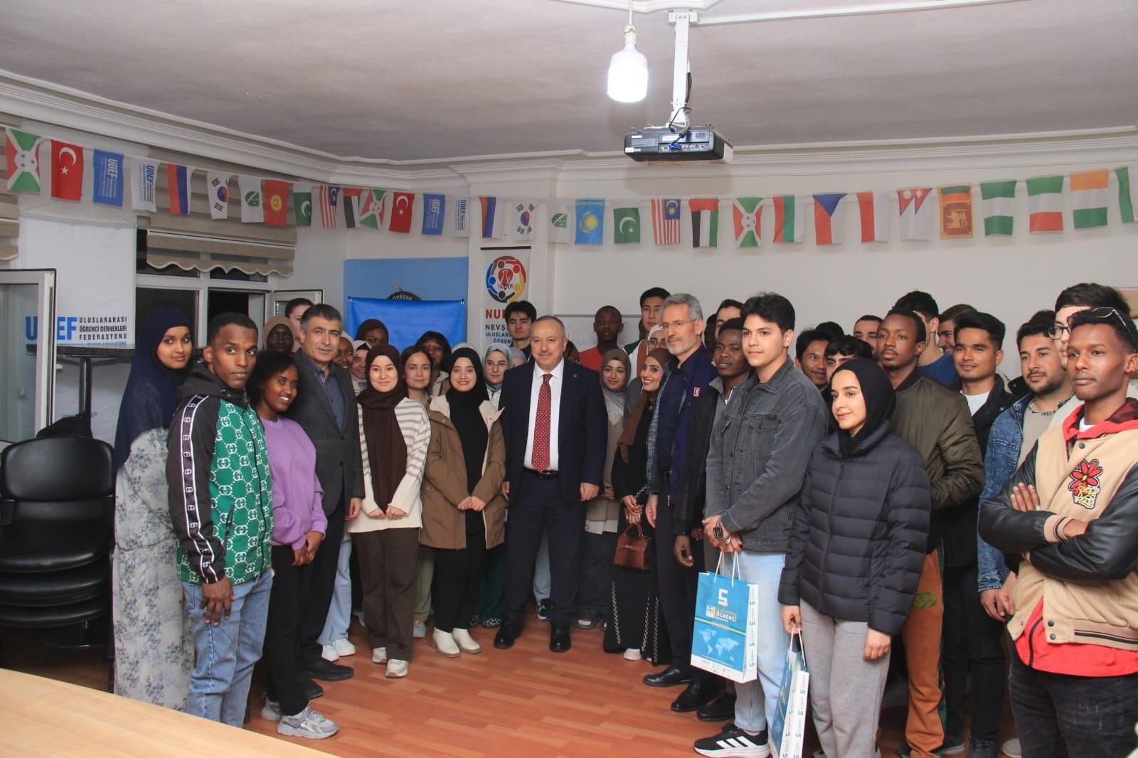 Nevşehir Valisi Ali Fidan ve Nevşehir Hacı Bektaş Veli Üniversitesi (NEVÜ) Rektörü Prof. Dr. Semih Aktekin, Nevşehir Uluslararası Öğrenci Derneği (NUDER) tarafından organize edilen iftar programında, şehirde eğitimlerini sürdüren uluslararası öğrencilerle bir araya geldi.