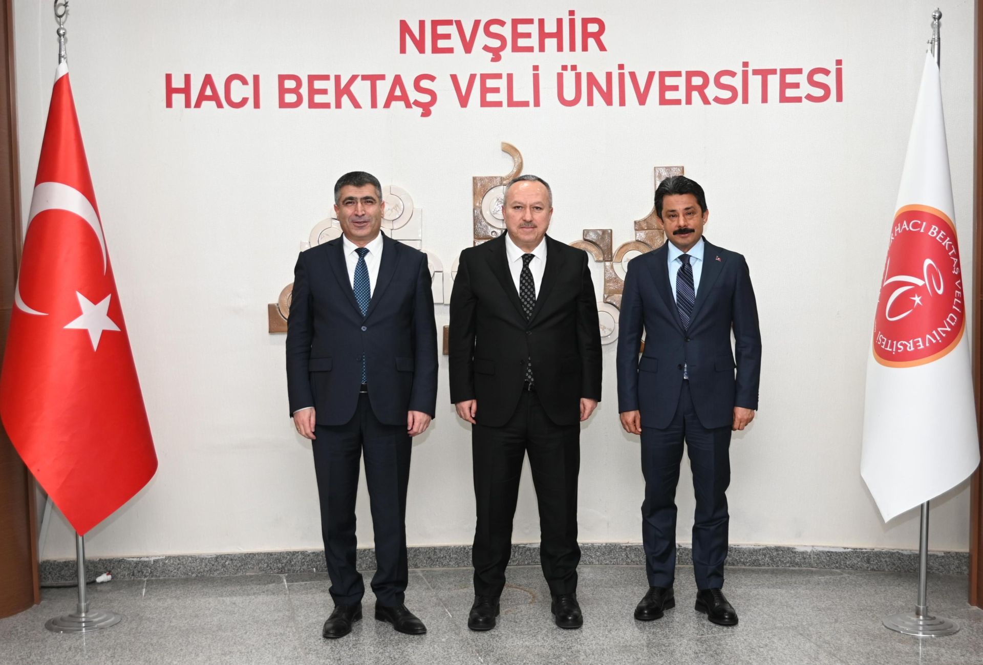 Nevşehir Valisi Ali Fidan beraberinde Kırşehir Valisi Murat Sefa Demiryürek ile Nevşehir Hacı Bektaş Veli Üniversitesi (NEVÜ) Rektörü Prof. Dr. Semih Aktekin’i ziyaret etti.