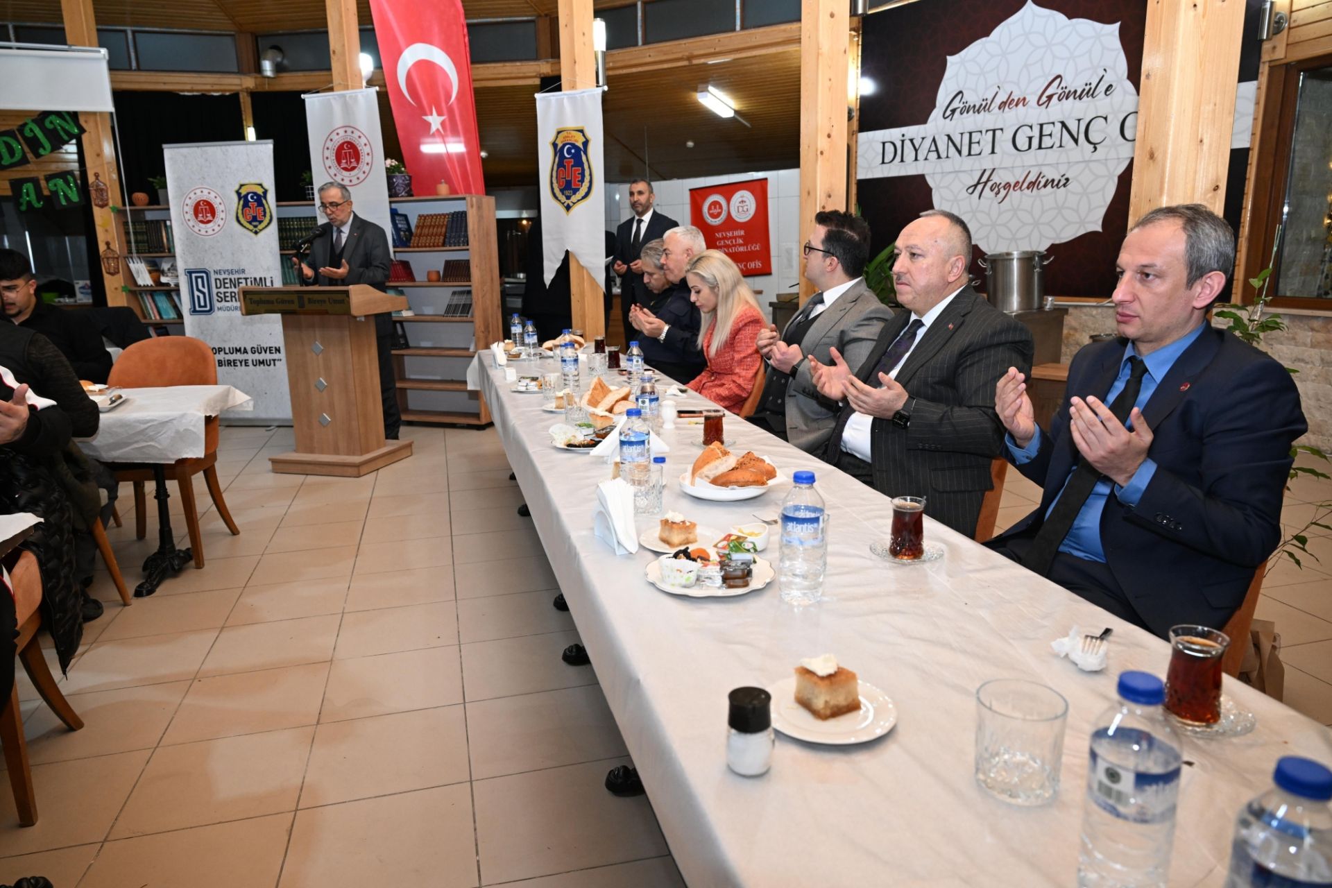 T.C. Adalet Bakanlığı ile T.C. Diyanet İşleri Başkanlığı arasında imzalanan iş birliği protokolü kapsamında; Denetimli Serbestlik Müdürlüğü koordinesinde ve Nevşehir İl Müftülüğünün katkılarıyla yürütülen Manevi Rehberlik Birimi faaliyetleri çerçevesinde gerçekleştirilen program, NEVÜ Camlı Köşk’te yapıldı. İftar programına; Nevşehir Valisi Ali Fidan, Nevşehir Cumhuriyet Başsavcısı Durmuş Ali Karakoca, NEVÜ Rektör Yardımcısı Prof. Dr. Bayram Deviren, İl Jandarma Komutanı Jandarma Kıdemli Albay Mehmet Çelik, İl Emniyet Müdürü Serkan Karaman, İl Müftüsü Kazım Güzel, Cumhuriyet Savcısı Çağatay Akça, Hâkim Habib Akın Kolukırık, Denetimli Serbestlik Müdürü Ali Bayrak, kurum personeli, denetimli serbestlik tedbiri altındaki yükümlüler ve aileleri katıldı.
