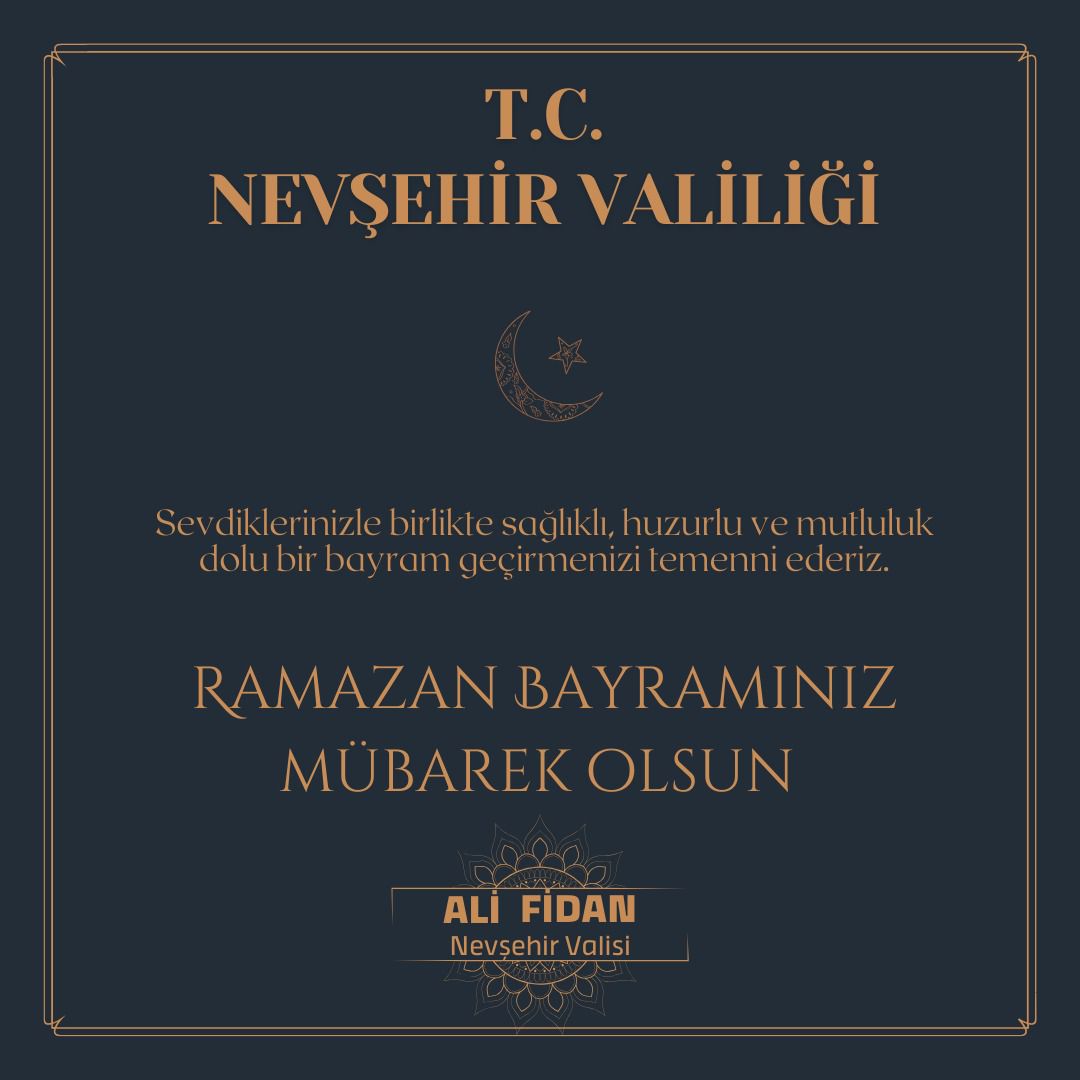 Nevşehir Valisi Ali Fidan Ramazan Bayramı kutlama mesajı yayınladı. Vali Fidan mesajında “Manevi güzelliklerin en üst seviyede yaşandığı, rahmet ve bereketin paylaşıldığı, mübarek Ramazan ayını yeniden canlandırıp sevgi, saygı ve kardeşlik duygularımızı pekiştiren, yardımlaşma ve dayanışmanın en anlamlı hale geldiği bir Ramazan Bayramı’na daha erişmenin, sevincini ve mutluluğunu hep birlikte yaşıyoruz.