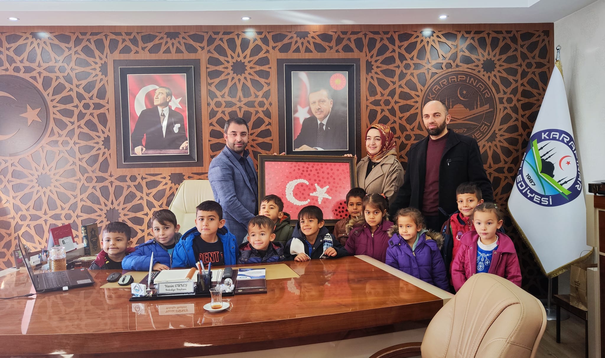Miniklerin hediyesinden oldukça duygulanan ve kendilerine teşekkür eden Karapınar Belediye Başkanı Yasin Güneş, “Okulumuza yaptığımız desteklerden dolayı teşekkür etmek ve minik elleriyle yaptıkları bu güzel hem de anlamlı hediyeyi vermek için ziyaretime gelen minik öğrencilerimize, öğretmenlerine ve okul müdürümüze teşekkür ederim” ifadelerinde bulundu.