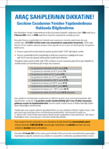 Aynı yasa ile araç muayene affı sayesinde Traktör, Otomobil, Motosiklet, Otobüs, Kamyon vb. araçlar ne kadar yıl gecikse dahi, örnek 1 ay, 5 yıl veya 10 yıl fark etmiyor 31 Aralık 2021 tarihine kadar muayene affından yararlanabiliyorlar. Üyelerimizin, vatandaşlarımızın bu aflardan yararlanmaları kendilerine büyük fayda sağlamaktadır. Muayene affında yansıtılan gecikme bedelinin nerdeyse yüzde 90-92’si siliniyor. Hepimiz biliyoruz ki muayenesiz araç kullanmak suç, bu yüzden dolayı bu büyük fırsatı kaçırmadan aftan yararlanmalısınız.” denildi.