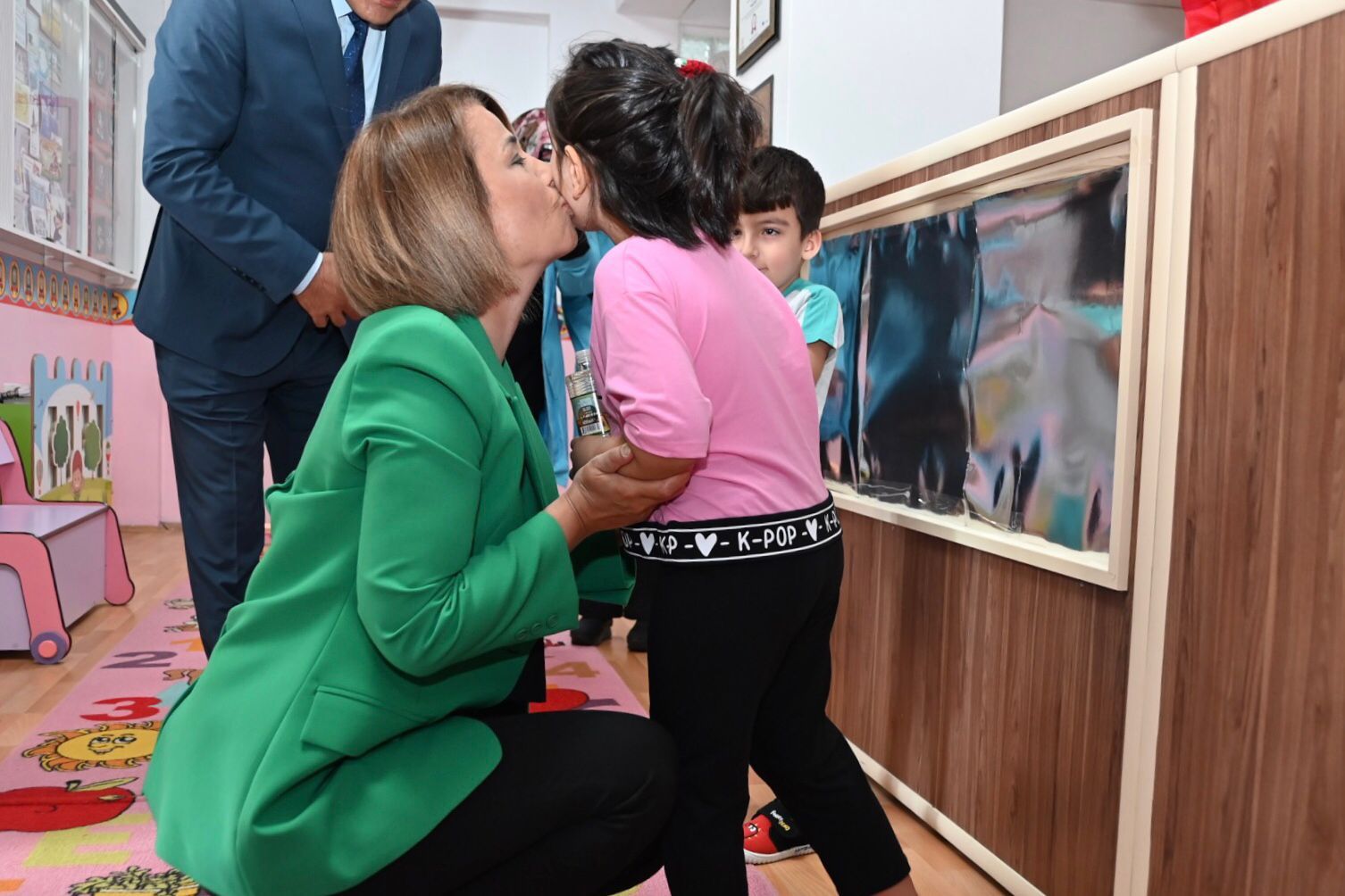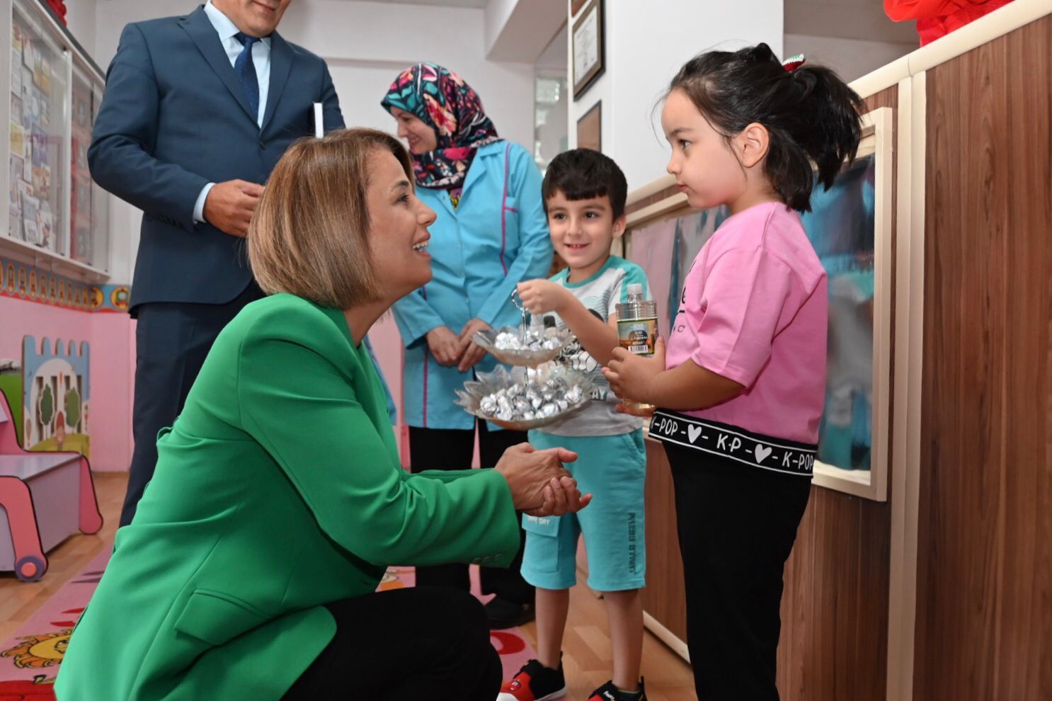 Vali Becel, eğitim öğretim hayatına başlayan minik öğrencilerle yakından ilgilendi ve sınıf aktivitelerini izledi.