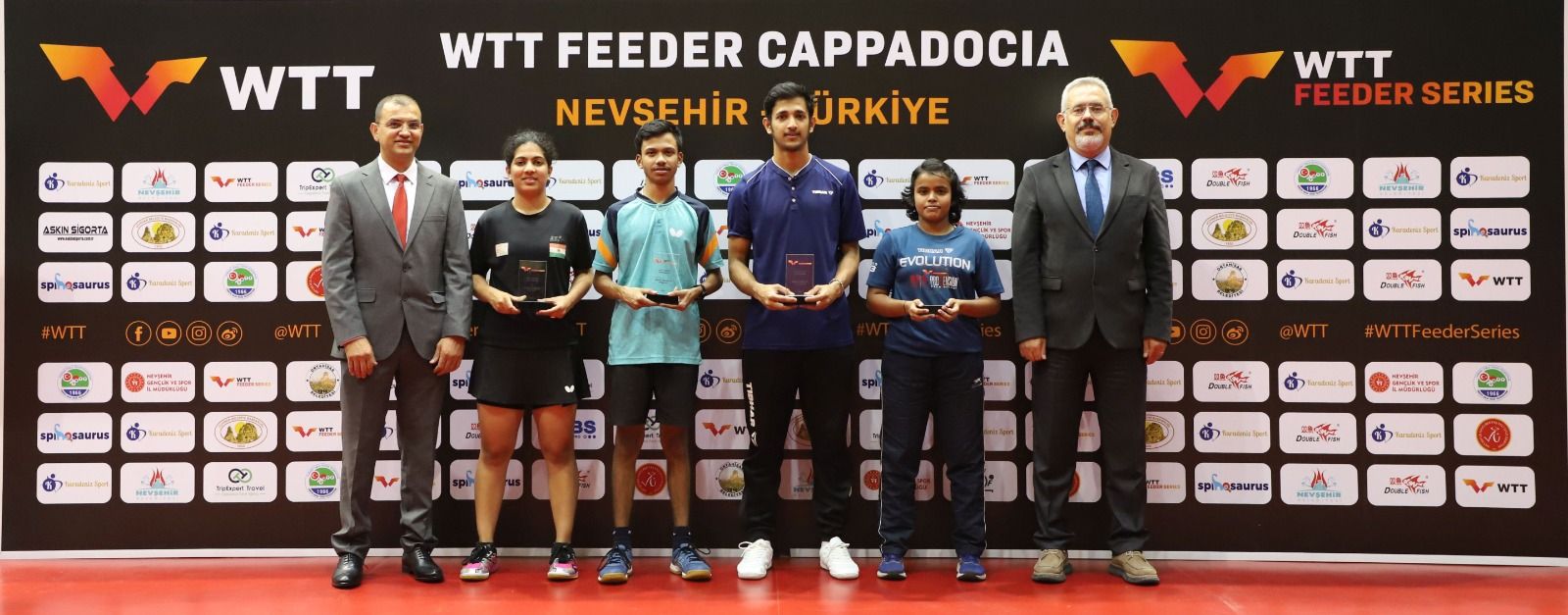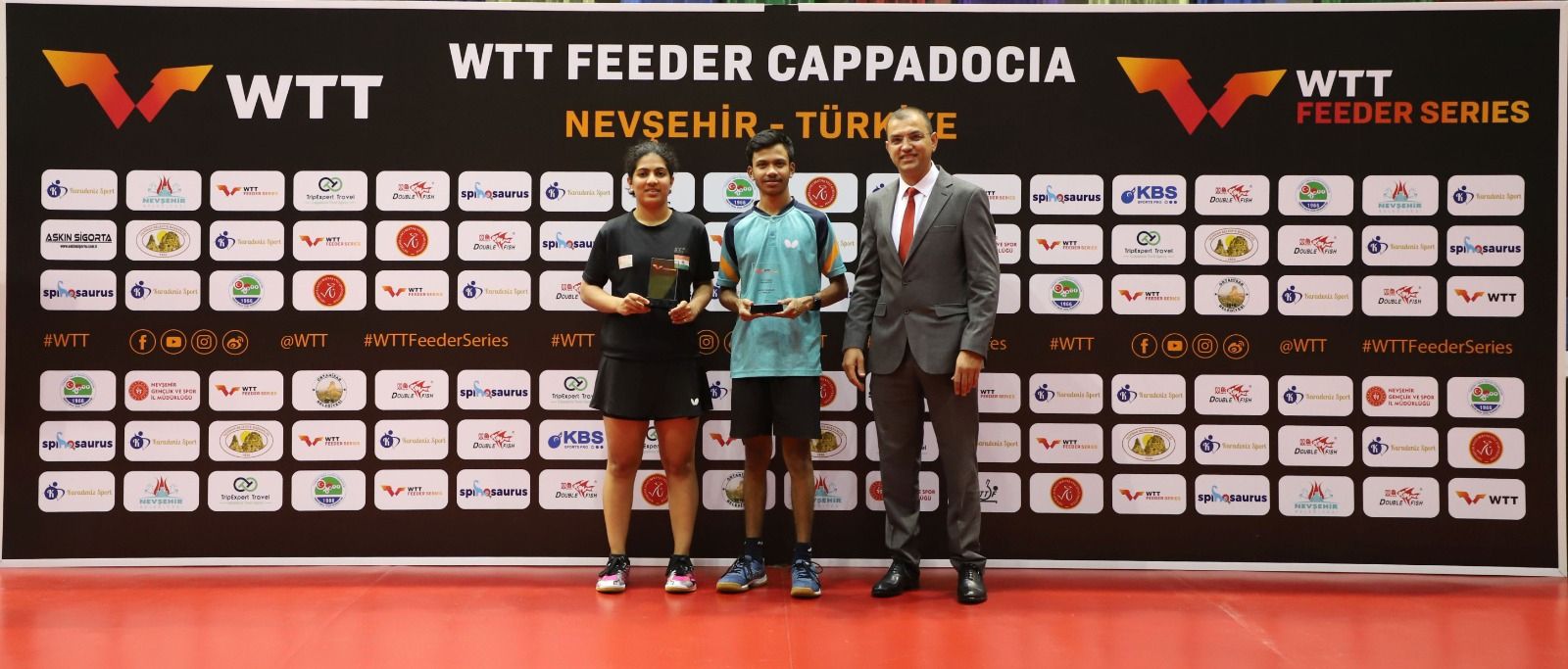 Dünya Masa Tenisi Federasyonu (ITTF) ve Türkiye Masa Tenisi Federasyonu iş birliğiyle NEVÜ Spor Merkezi’nde düzenlenen turnuvada; Karışık Çiftler kategorisinde Akash Pal / Poymantee Baisya ikilisi birinci olurken ödüllerini NEVÜ Rektör Yardımcısı Prof. Dr. Mutluhan Akın’ın elinden aldılar. Yine aynı kategoride ikinci olan Anirban Ghosh / Swastika Ghosh ikilisine ise ödülleri NEVÜ Spor Bilimleri Fakültesi Dekanı Prof. Dr. Selçuk Akpınar tarafından verildi.