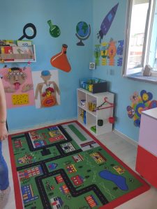 Uzun süren çalışmalar sonucu duvarları boyanan sınıfta raf, dolap ve kitaplıklar kurularak güvenli olacak şekilde monte edildi. Okul Öncesi Eğitimi Anabilim Dalı öğrencileri kendi el emekleri ile oluşturdukları öğrenme merkezlerine materyalleri yerleştirdi.