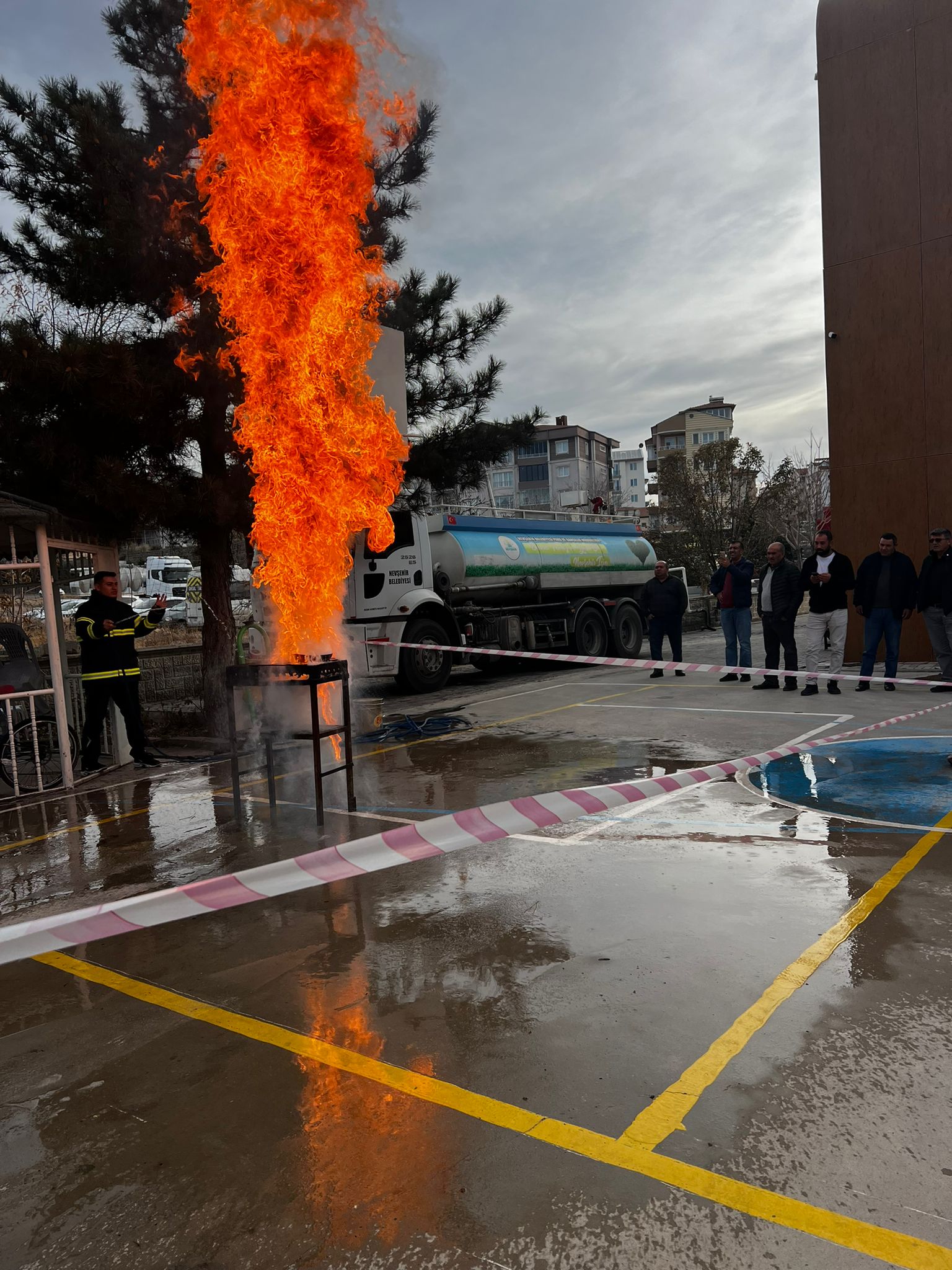 İl geneli 300’den fazla görevli öğretmenlerin yenileme eğitimi aldığı uygulama programında; Yağ Yangını, Su İşleme, Köpük Oluşum Aşamaları, Termal Kamera Bilgilendirme ve Kullanma, Yangın Söndürme Tüpü kullanımı ve kullanım alanları ile araç gereç malzeme bilgilendirmesi yapıldı.