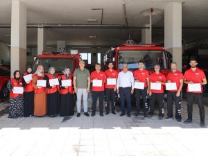 Nevşehir Belediyesi İtfaiye Müdürlüğü Eğitim Birimi tarafından Yangın Güvenliği ve Yangına Müdahale Teknikleri Eğitimi verilen Nevşehir İHH Arama Kurtarma Ekibinde görev alan gönüllülere sertifikaları Nevşehir Belediye Başkanı Dr. Mehmet Savran tarafından verildi.