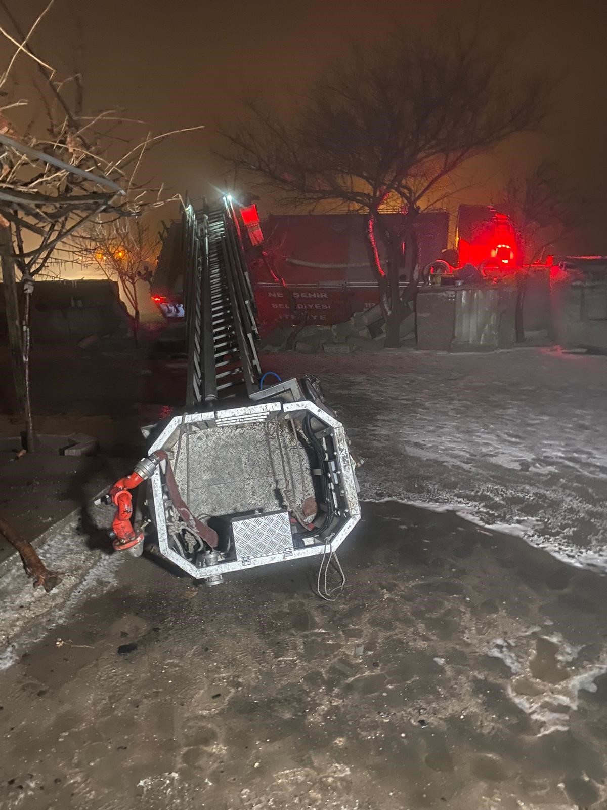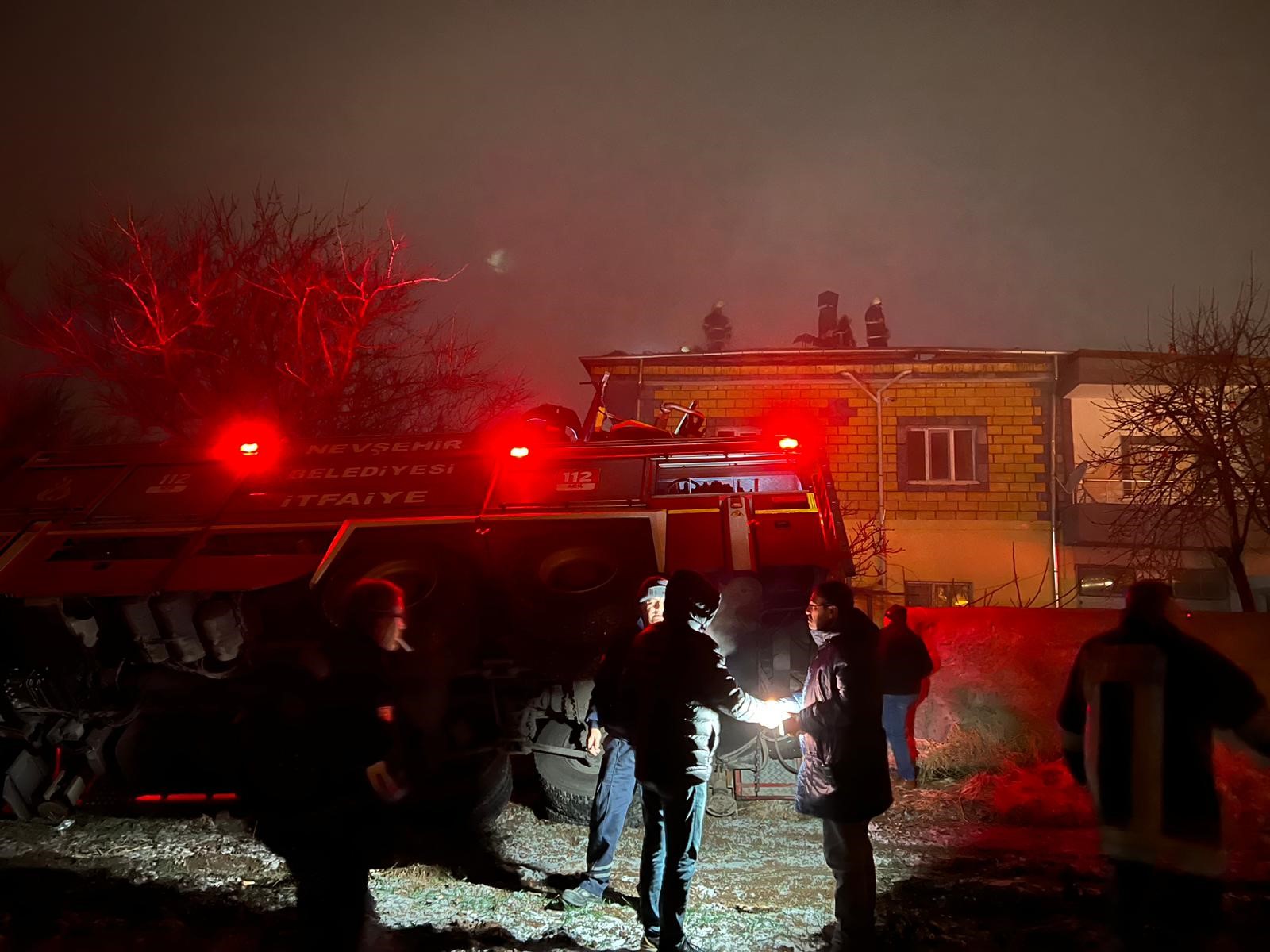 Olay yerine itfaiye, jandarma ve sağlık ekipleri sevk edildi. Yangına müdahale eden itfaiye aracı bir anda evin bahçesine yan yattı. İtfaiye aracının sepetinde bulunan itfaiye eri Raşit Kale yaralandı. Yaralanan itfaiye eri ambulansla Nevşehir Devlet Hastanesine kaldırıldı.