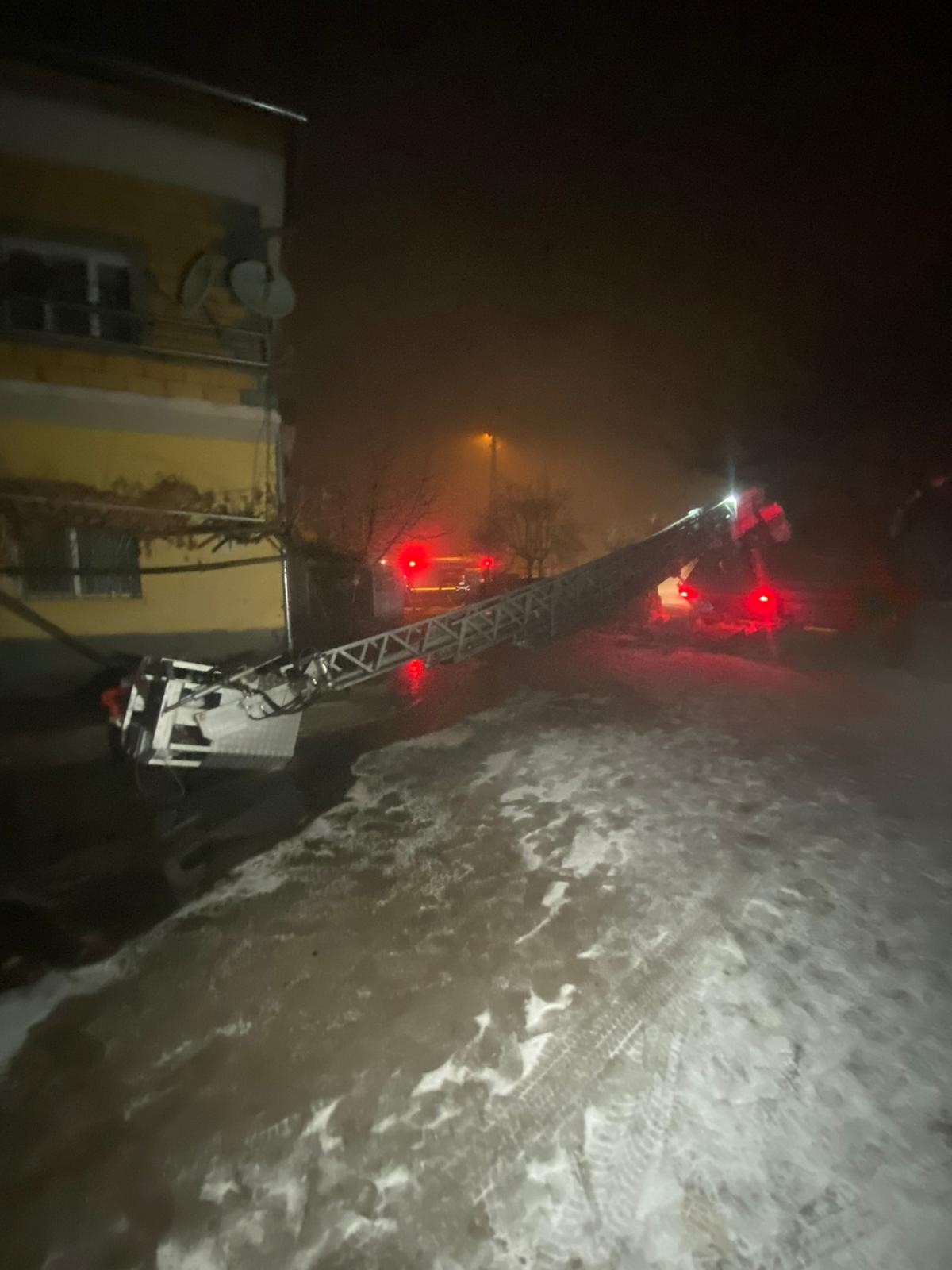 Ev sahibinin eşi de “Kalorifer bacasının yanı tahtaydı. Kalorifer borusundan ısındığından tahtalar tutuşmuş. Yangına müdahale eden itfaiye aracı da tarlanın yumuşak olduğundan devrildi. 1 kişi yaralandı” şeklinde konuştu.