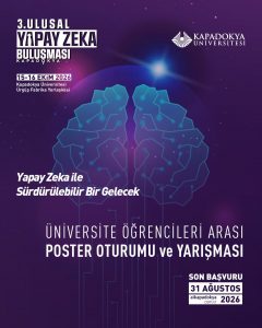 3. Ulusal Yapay Zekâ Buluşması Kapadokya kapsamında düzenlenen Üniversite Öğrencileri Arası Poster Oturumu ve Yarışması, bu yıl “Yapay zekâ ile sürdürülebilir bir gelecek” temasıyla gerçekleştiriliyor.
