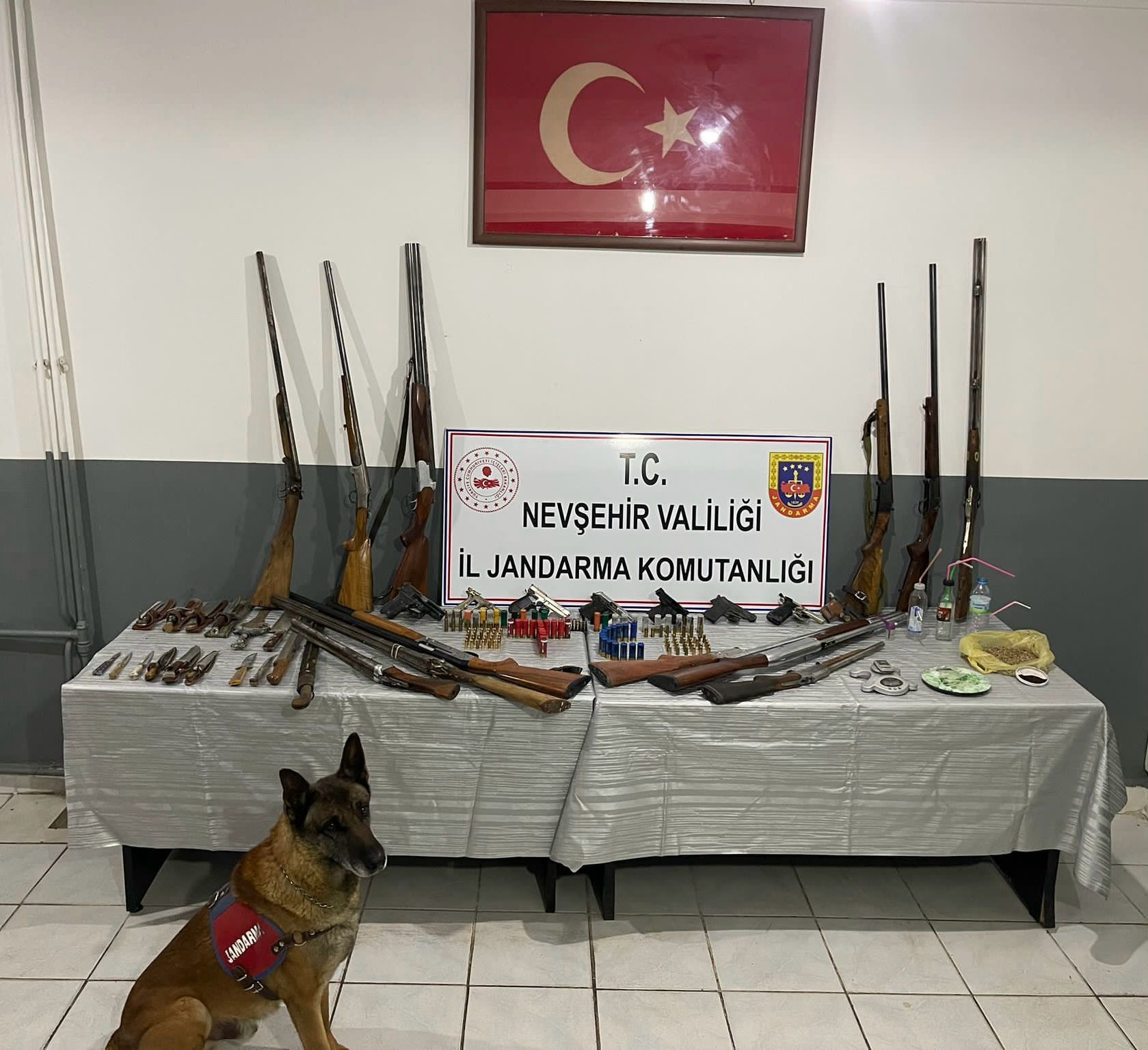 Nevşehir İl Jandarma Komutanlığı sorumluluk bölgesi olan Hacıbektaş ilçesi Köşektaş köyünde yapılan çalışmada çok sayıda yasadışı ürünler olduğu el geçirildi. 19 Aralık 2023 tarihinde Nevşehir İl Jandarma Komutanlığı bağlı birlikleri ve Jandarma Suç Araştırma Timleri (JASAT) tarafından yapılan istihbari çalışmalar neticesinde M.H.Y. isimli şahsın evinde yapılan aramada; 12 adet Av Tüfeği, 8 adet Kurusıkı Tabanca, 7 adet Tabanca Şarjörü, 55 adet 12 Cal.Av Tüfeği Fişeği, 47 adet Kuru Sıkı Tabanca Fişeği, 6 adet G-3 Piyade Tüfeği Mermisi, 74 adet Tabanca Fişeği, 6 adet 3.57 mm Magnum Fişek, 4 adet 45 Cal. Tabanca Fişeği, 2 adet 7.65 mm Tabanca Fişeği, 6 gram Kubar Esrar, 100 gram Kenevir Tohumu, 4 adet Payp, 3 adet Hassas Terazi, 3 adet Kasatura, 10 adet değişik ebatlarda bıçak, 1 Osmanlı Dönemine ait Kılıç ve 1 adet çalıntı kaydı bulunan Mondial marka Motosiklet ele geçirildi. Şüpheli M.H.Y. isimli şahsın yapılan iş ve işlemlerinin ardından adli makamlara teslim edildi.