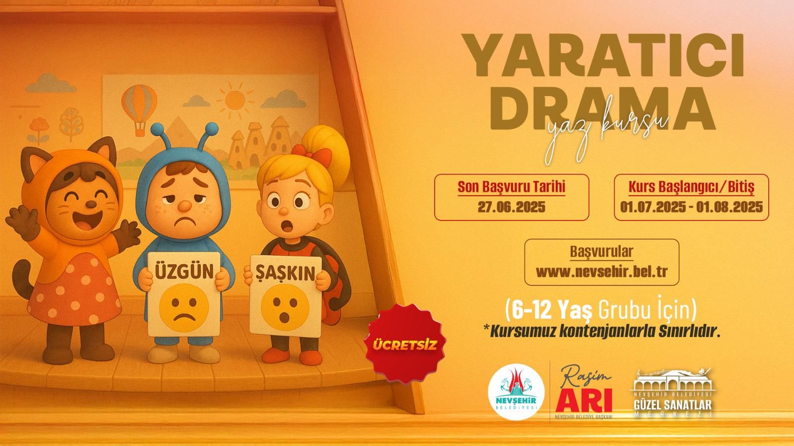 Sosyal etkinlikler kapsamında özellikle tatil dönemlerinde çocukları ve gençleri zengin içerikli yaz kurslarıyla buluşturan Nevşehir Belediyesi, 6-12 yaş grubundaki çocuklar için Yaratıcı Drama Kursu açıyor. Sınırlı kontenjanla açılacak kurs için kayıtlar başladı.