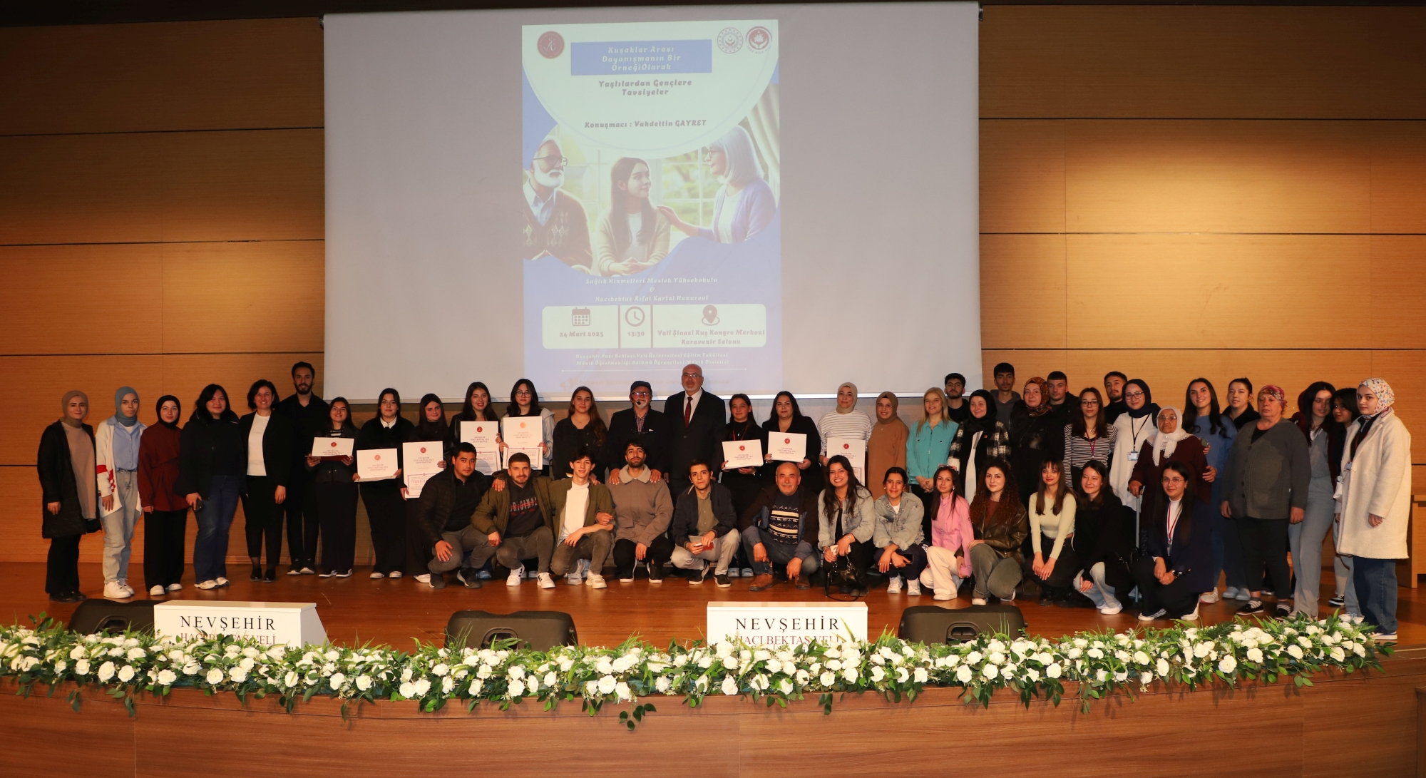 Nevşehir Hacı Bektaş Veli Üniversitesi (NEVÜ) Sağlık Hizmetleri Meslek Yüksekokulu (SHMYO) ve Nevşehir Aile ve Sosyal Hizmetler İl Müdürlüğü tarafından “18-24 Mart Yaşlılara Saygı Haftası” kapsamında “Kuşaklararası Dayanışma: Yaşlılardan Gençlere Öğütler” temasıyla program düzenlendi.