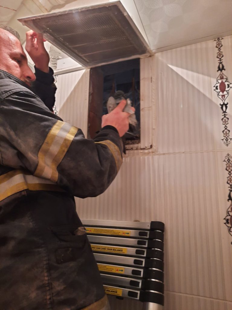 Kıratlıoğlu Mahallesi, Beyazıt Sokak’ta bulunan bir apartmanın havalandırma boşluğuna düşen güvercin yavrusunu fark eden apartman sakinleri durumu itfaiye ekiplerine bildirdi.