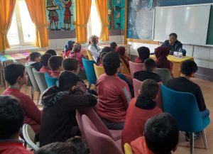 Aytekin “Kitaplara Göz Değsin” projesi kapsamında öğrencilere yazarlık ve kitap okuma alışkanlığı üzerine görüşlerini aktardı.
