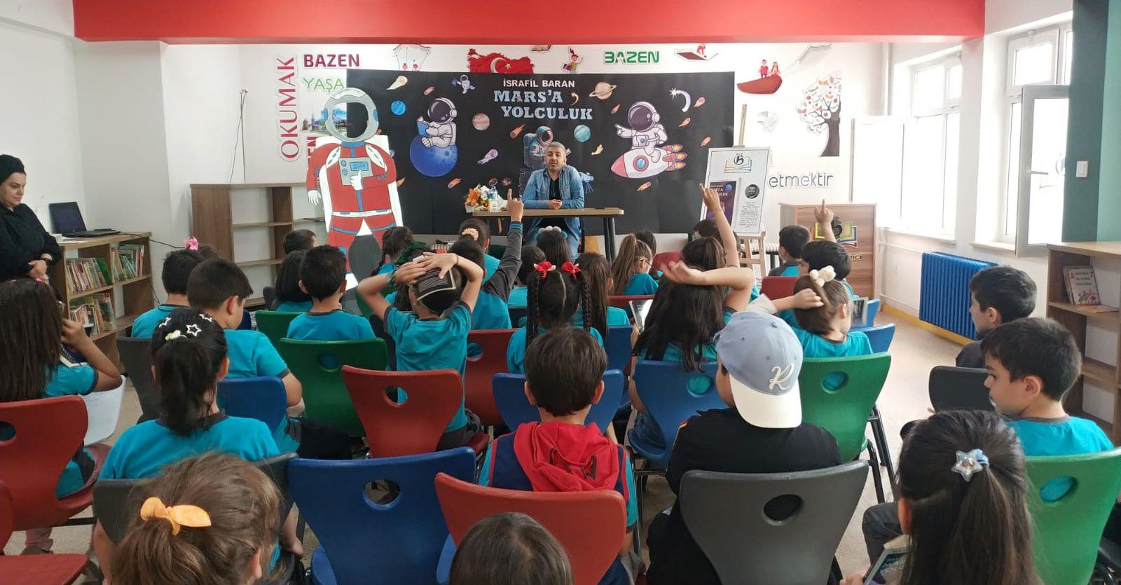 Yazar İsrafil Baran, Kayseri Melikgazi Besime Özderici İlkokulu’nda düzenlenen Mars’a Yolculuk kitabının imza günü etkinliğine katıldı.