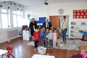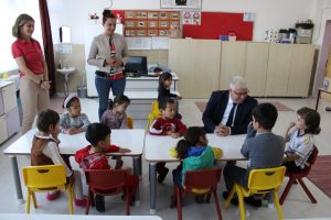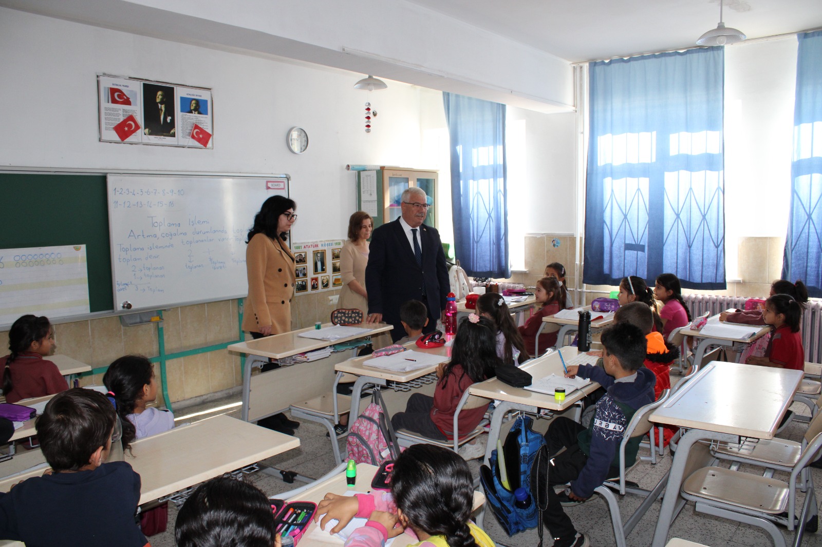 Bugünkü ziyaretini Atatürk İlkokuluna yaparak okul müdürü Ayşegül Baki’den yapılan çalışmalar hakkında bilgi aldı. İl Müdürü, anasınıfı öğrencilerini sınıflarında ziyaret ederek sohbet etti.