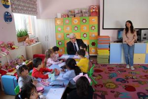 Okulların gelişim profilini gözlemlemek ve eğitim öğretim faaliyetlerini yerinde incelemek amacıyla İl Milli Eğitim Müdürü Yusuf YAZICI, Lale Anaokuluna ziyaret gerçekleştirdi. İl Müdürü, eğitim gören minik öğrencilerle yakından ilgilendi ve sınıf aktivitelerini izledi. Öğretmenlerle de bir araya gelerek fikir alışverişinde bulunan Sayın YAZICI; geleceğimizin teminatı olan çocukların mutluluğunun bizim için çok önemli olduğunu belirterek onların eğitimi için var güçleriyle çalıştıklarını ve öğrencilere hizmet etmekten gurur duyduklarını dile getirdi. İl Milli Eğitim Müdürü Yusuf YAZICI; kurum çalışanlarına, emek verip katkı sağlayan herkese teşekkür etti.