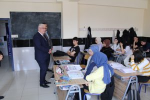 İl Milli Eğitim Müdürü Yusuf YAZICI, okuldaki eğitim-öğretim faaliyetlerini yerinde görmek ve okul yönetimi ile bir araya gelerek eğitimdeki gelişmeleri değerlendirmek amacıyla okul ziyaretleri gerçekleştirerek okullarda öğretmen ve öğrencilerle buluşmaya devam ediyor. Bu bağlamda bugünkü ziyaretini Ürgüp Anadolu İmam Hatip Lisesine yapan İl Müdürü; Ürgüp ilçe milli eğitim müdürü Savaş ÖZDEMİR eşliğinde, sınıfları gezerek öğrencilerin derslerine katıldı ve öğrencilerle bir süre sohbet etti. Ardından okul idarecileri ve öğretmenlerle öğretmenler odasında bir araya gelen Sayın YAZICI, görüş ve önerileri dinledi. Okul yönetimi ve öğretmenlerle yapılan görüşmelerde; öğrencilerin gelişim süreçleri, etkili ve verimli ders çalışma metotları, okuldaki eğitim kalitesini artırmak ve öğrencilerin daha iyi eğitim almasını sağlamak için yapılması gereken konuları ele aldı. İl Milli Eğitim Müdürü Yusuf YAZICI, özverili çalışmalarından dolayı idarecileriyle öğretmenlere teşekkür etti ve öğrencilere derslerinde başarılar diledi.