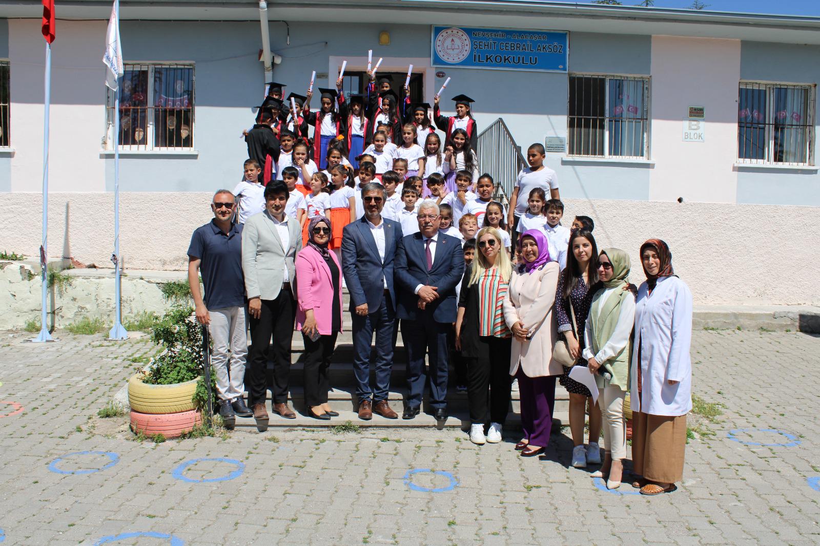 Nevşehir İl Milli Eğitim Müdürü Yusuf YAZICI, Alacaşar Şehit Cebrail Aksöz İlkokulu tarafından okul bahçesinde düzenlenen ”Okuma Bayramı, Mezuniyet Töreni ve Yıl Sonu Şenliği”ni ziyaret etti. Şenliğe şube müdürü Gülüzar ERGİN, idareciler, öğretmenler, veliler ve öğrenciler katıldı. Öğrencilerin hazırladıkları etkinlikleri izleyen İl Müdürü, mezun olan öğrencileri tebrik ederek bundan sonraki eğitim hayatlarında başarılar diledi.