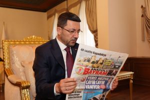 Daha sonra Ekici, Nevşehir Gazeteciler Cemiyeti’nin üst kuruluşu olan Türkiye Gazeteciler Federasyonu’nun her bayram çıkarttığı ve NGC Başkanı Bayram Ekici’nin sorumlu müdür olduğu “Anadolu Bayram” gazetesini başkan Arı’ya sundu. Gazeteyi inceleyen Arı; büyük emeklerle ortaya çıkan bu gazeteye desteğini esirgemeyen herkese de ayrıca teşekkür etti.