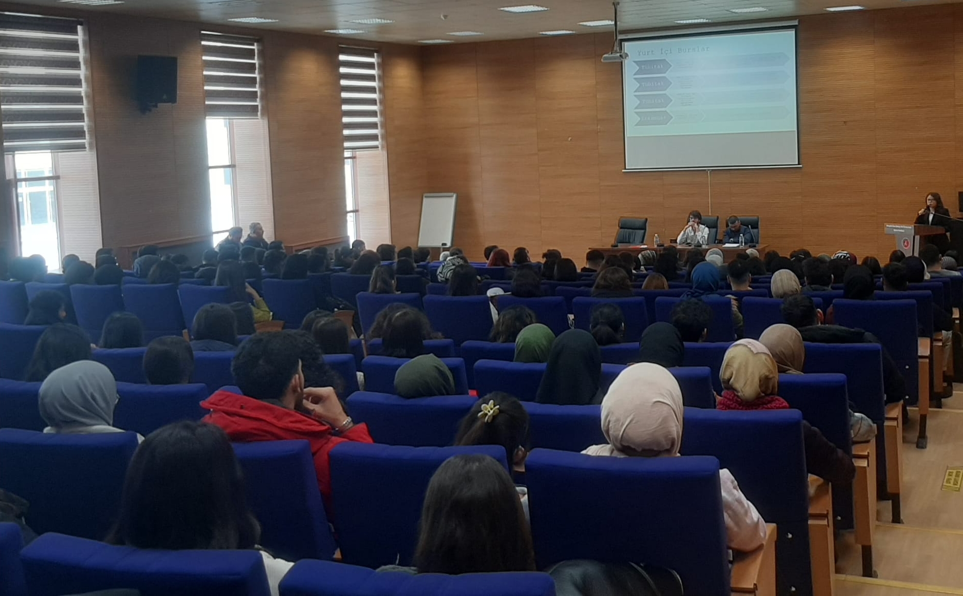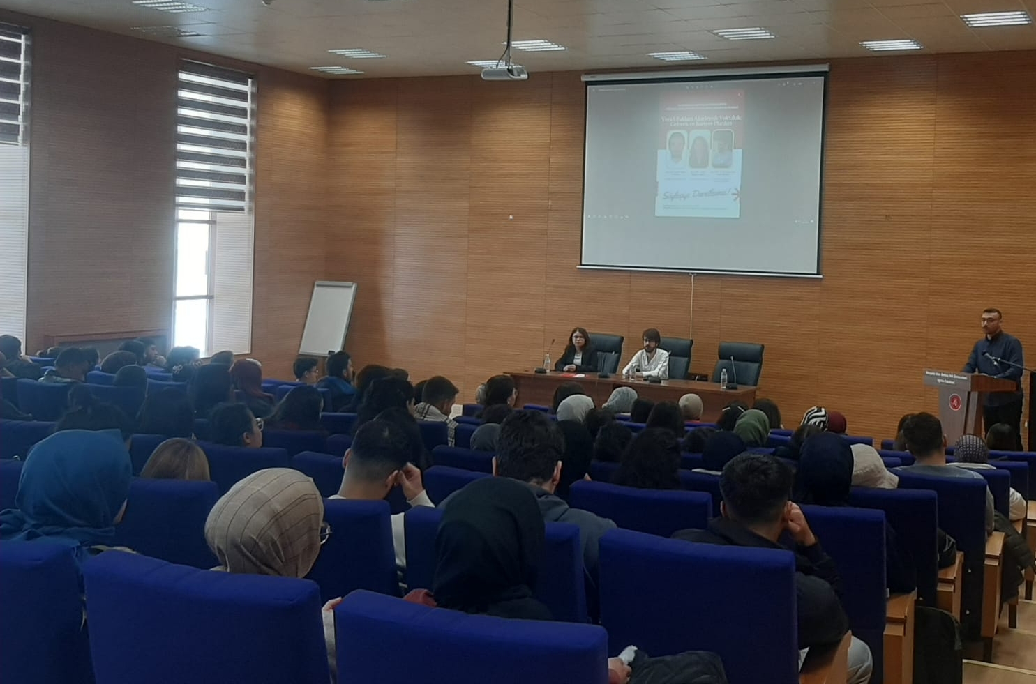 NEVÜ Eğitim Fakültesi Şehit Eren Bülbül Konferans Salonu’nda lisans öğrencilerine yönelik gerçekleştirilen söyleşi programında Arş. Gör. Bedri Nejat Yüzüak yüksek lisans eğitimi konusunda, Arş. Gör. Ayten Öykü Yaşar doktora eğitimi konusunda ve Arş. Gör. Dr. Muhammed Talha Özalp bütüncül yaklaşımla lisansüstü eğitim üzerine konuştu.