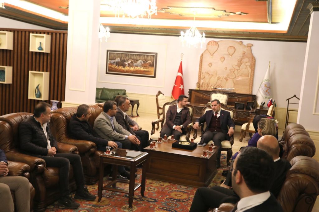 Nevşehir Belediyesi’ni ziyaret eden AK Parti Genel Merkez Yerel Yönetimler Başkan Yardımcısı ve Adana Milletvekili Ahmet Zenbilci ve beraberindeki heyeti Belediye Başkanı Rasim Arı, Başkan Yardımcıları ve AK Partili Meclis Üyeleri karşıladı.