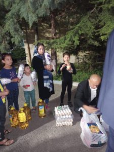 Yemekten sonra Yetim Eli Derneği tarafından katılımcı aile bireylerine teker teker zarflara konmuş nakdi yardım desteğinin yanı sıra annelere et, gıda kolisi ve market alışveriş kartları dağıtıldı.