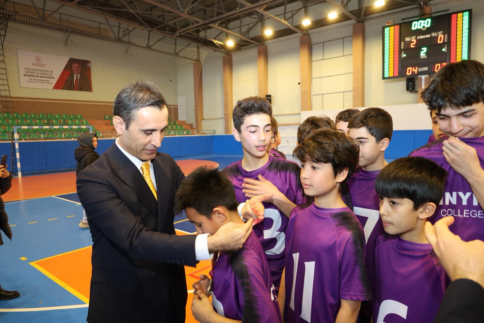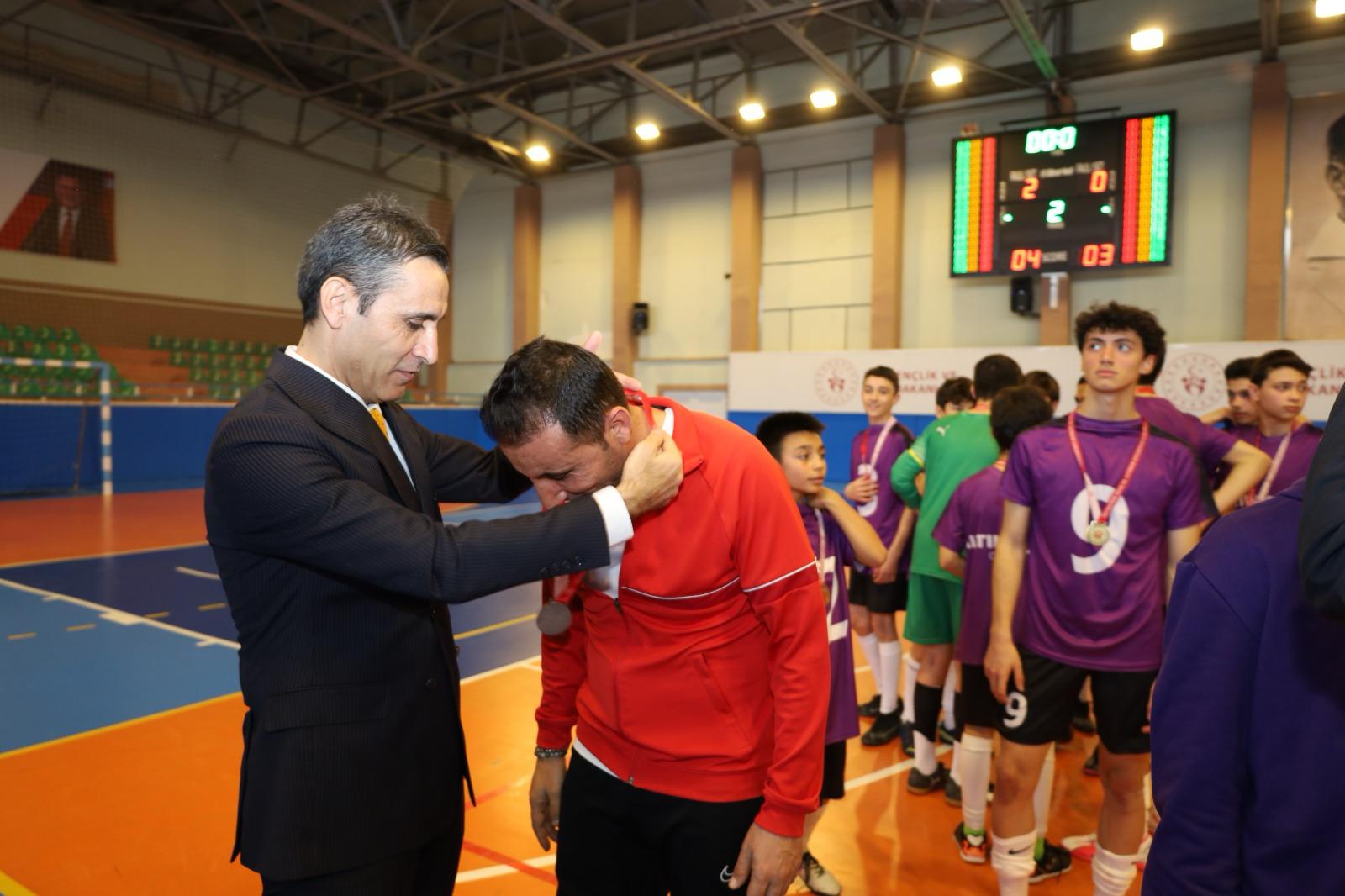 Dereceye giren okullara kupa ve madalyaları törenle verildi. Törene İl Müdürü Muhsin Özdemir katıldı.